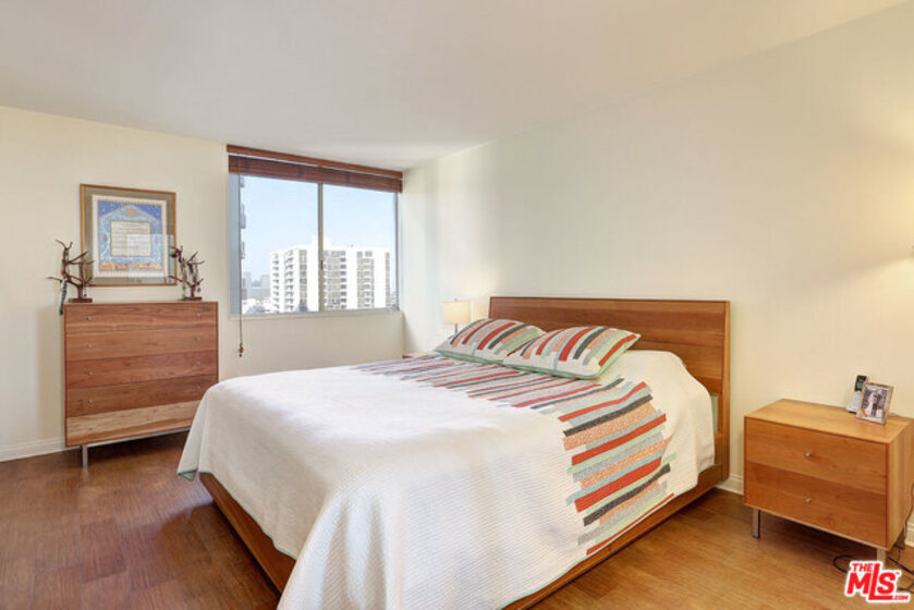 Fantastic location at Wilshire Corridor. One bedroom with a bonus second bedroom/den. Minutes to Westwood, UCLA, close to Century City ,Beverly Hills and freeways. Beautiful tile wood floors and open floorplan. Living room with floor to ceiling windows and balcony. 24 hour security, doorman service, pool and assigned parking. Located on the 10th floor. Must see!