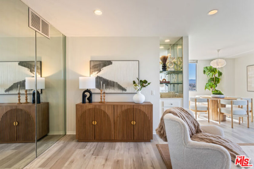 Light-filled and welcoming, this spacious corner residence at The Wilshire-Selby West showcases sweeping mountain and city views from every room and north-facing balcony. Recently refreshed with new paint, flooring, and stylish bath upgrades, the oversized one-bedroom offers an uplifting sense of space. A gracious entry opens to generous living and dining areas with a dry bar, a well-appointed kitchen, and a convenient guest bath with shower. The serene bedroom suite features ample walk-in closets and a beautifully updated ensuite bath. Residents enjoy 24-hour security, concierge, doorman, pool, gated tandem parking for two with an EV charger, and an unbeatable location near UCLA, Westwood Village, Century City, Brentwood, and Beverly Hills. Zoned for the highly regarded Warner Avenue Elementary School and with easy access to the 405 freeway. The Wilshire Selby West is among the most prestigious and lowest HOA high-rises on the Wilshire Corridor.