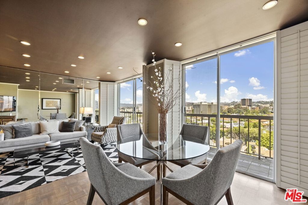 Claim your part of the highly desirable Wilshire Corridor. This spacious and well-maintained condominium sits on the north-facing 12th floor of The Wilshire Selby West, with an expansive 160-SF balcony that offers sweeping views of the city and Getty Center set against stunning sunsets. The living room, dining room and bedroom all feature floor-to-ceiling sliding glass doors that bathe the condo in natural light. Each has been recently outfitted with wood shutters for shade and privacy. Enjoy a galley-style kitchen, spacious living area and ample closet space. With one of the lowest HOAs in the area, the building boasts 24/7 concierge services and an updated lobby and common area. Conveniently close to the condos front door, the elevator offers easy access to the pool, sauna and garage, where youll find a 2-car tandem parking space and storage. When you step outside, youre only blocks from Westwood Village, IPIC Theaters and Equinox. Come enjoy premium L.A. living.