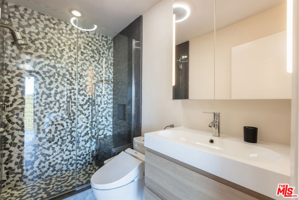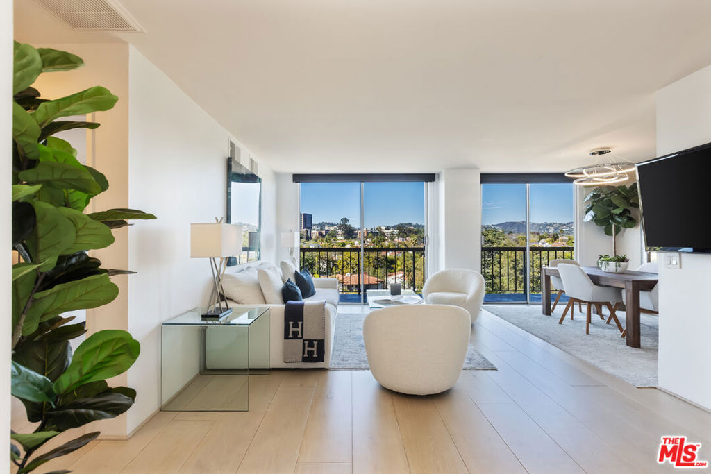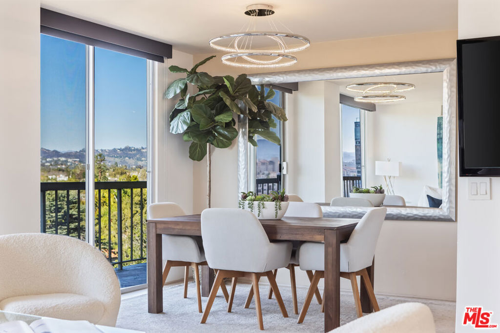 Welcome to this exquisite modern residence on the prestigious Wilshire Corridor, featuring unparalleled, unobstructed mountain VIEWS! This thoughtfully designed floor plan features an open living area perfect for entertaining, a sophisticated dining space, a sleek modern kitchen, and a spacious primary suite. Floor-to-ceiling windows in both the living room and bedroom flood the home with natural light and open onto an expansive balcony that spans the entire width of the unit, offering stunning north-facing vistas of the Holmby Hills. The en-suite primary bath and powder room are outfitted with state-of-the-art Toto Washlets, Bluetooth audio for immersive sound, and customizable lighting for an elevated experience. Additional features include in-unit laundry, built-in appliances, and a generous walk-in closet. This pet-friendly, full-service building offers a wealth of amenities, including a 24-hour concierge, a grand formal lobby, a pool, a sauna, the convenience of EV charging at every parking space, extra storage, and some of the lowest HOA dues on the Wilshire Corridor. A rare opportunity to own in one of Westwood's premier luxury high-rises, this residence is just moments from UCLA, Westwood Village shops and dining, Century City, Beverly Hills, Bel-Air, Brentwood, and the Pacific Ocean.