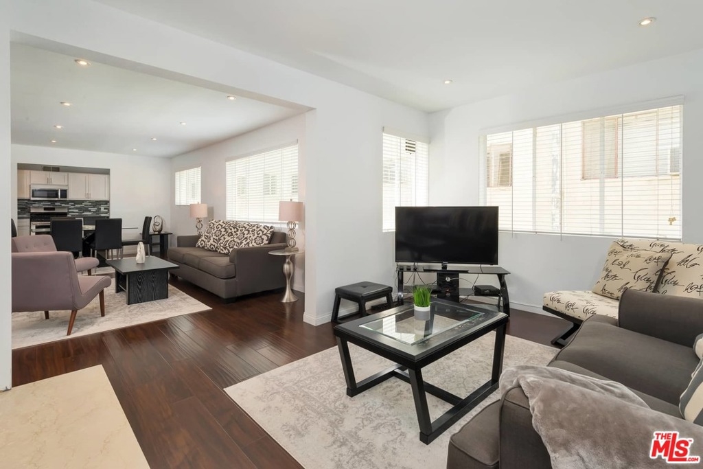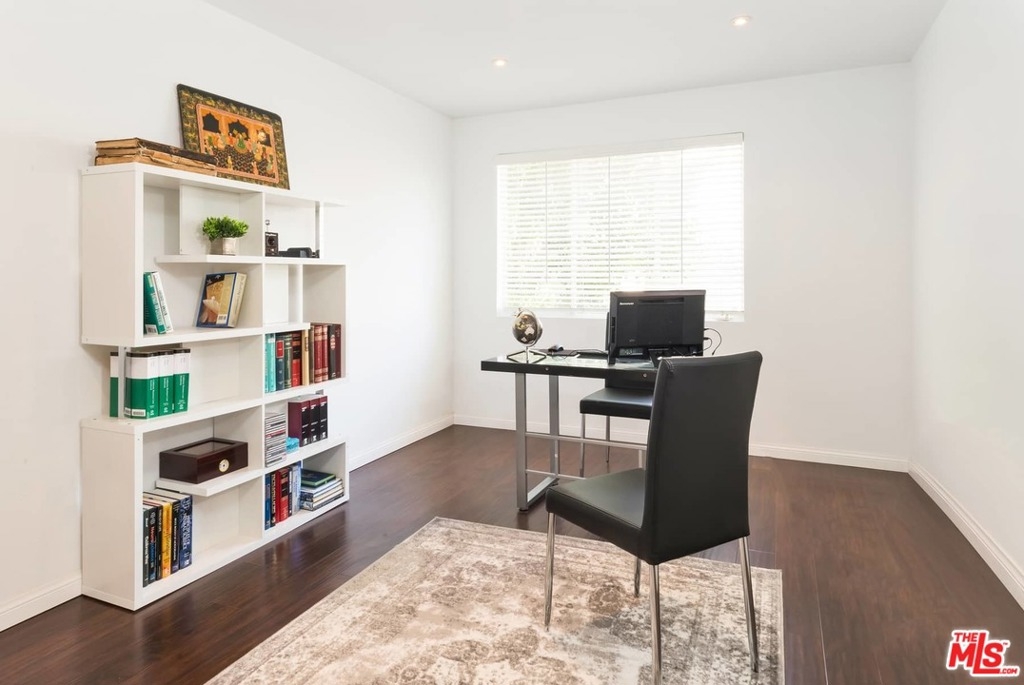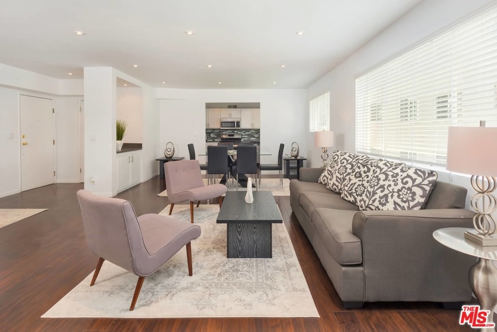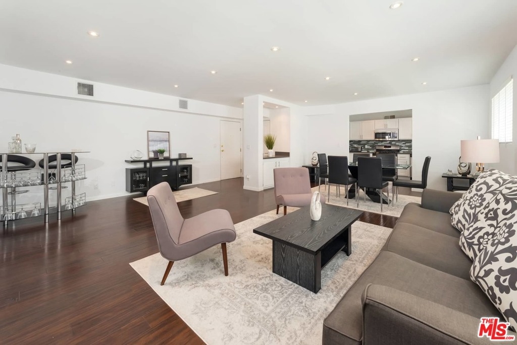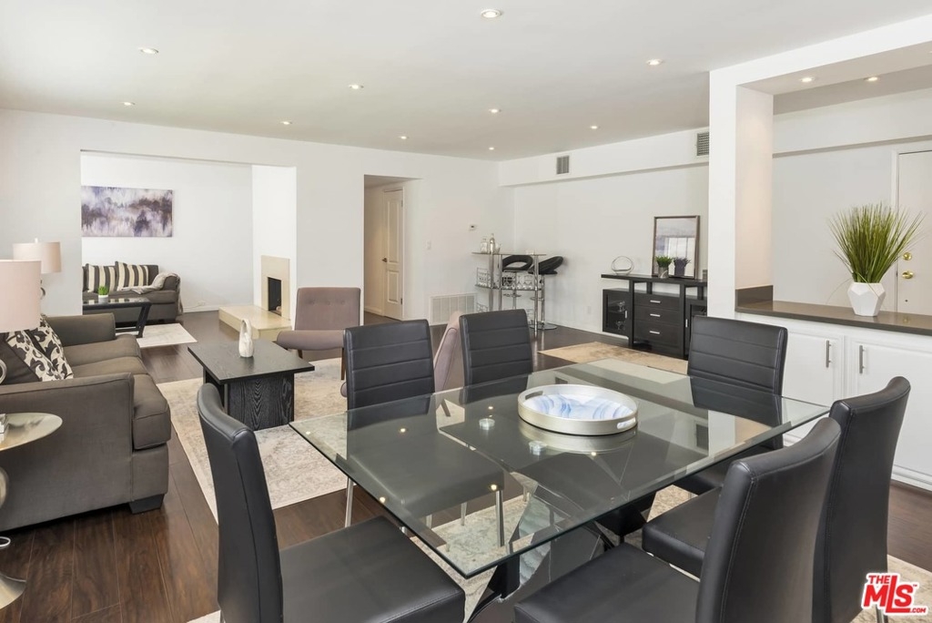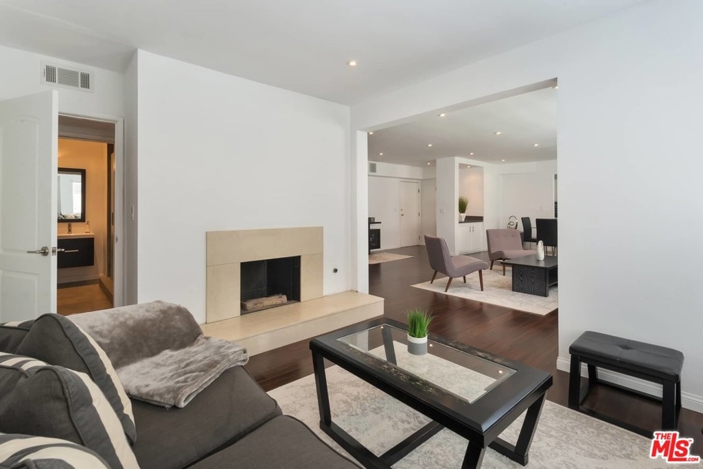 Luxury two bedroom, two bath plus den condominium in the Wilshire Westwood Terrace, one of the original low rise buildings on the prestigous Wilshire Corridor. Tastefully updated in acontemporary style and located in a coveted back-corner unit. Open concept floorplan, light and bright, and warmed by wide-planked wood floors throughout. A large living/dining area flows into the open cook's kitchen featuring Bosch stainless steel appliances including a washer/dryer. On the opposite side of the living area is an open den/media room with cozy fireplace. There's a spacious master suite with its own sitting deck, plenty of closet space and a wonderful master bath including a separate spa tub and shower with dual vanities. A second bedroom, nicely-sized, an adjacent guest bathroom with oversized glass-enclosed shower. Furniture isn't staging and can be sold with condo. Close proximity to UCLA, Westwood & Brentwood Villages, Beverly Hills and the 405. Located in the Warner Avenue School Dist.