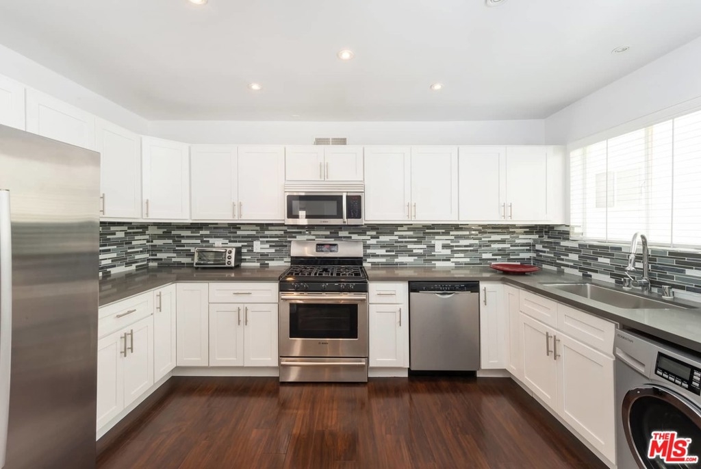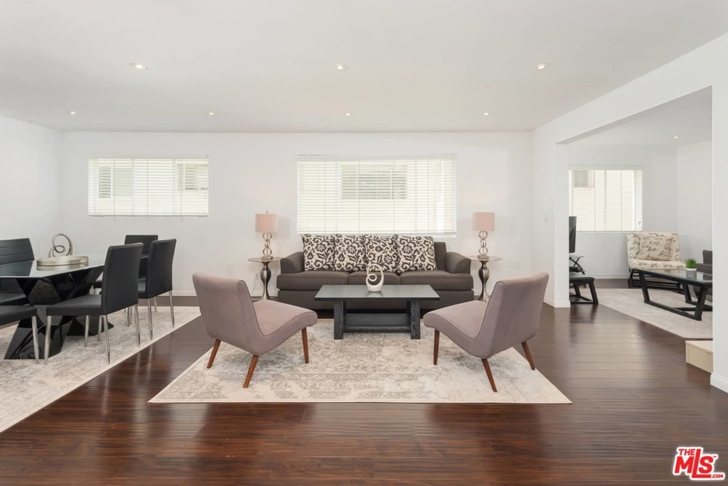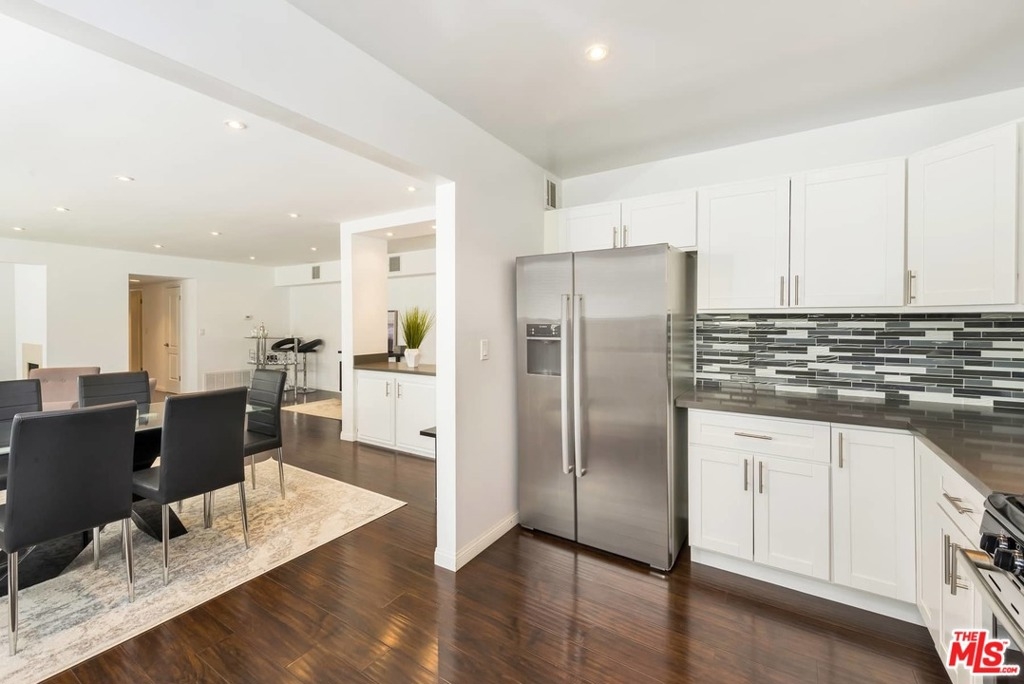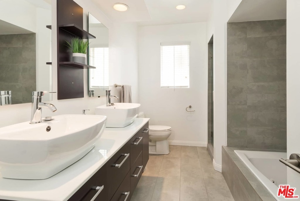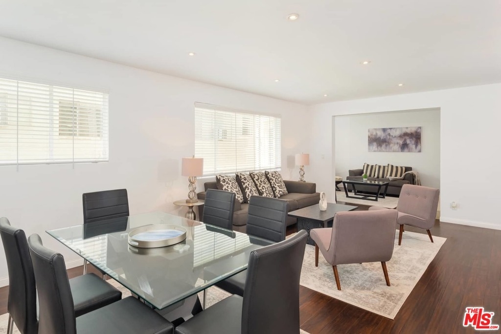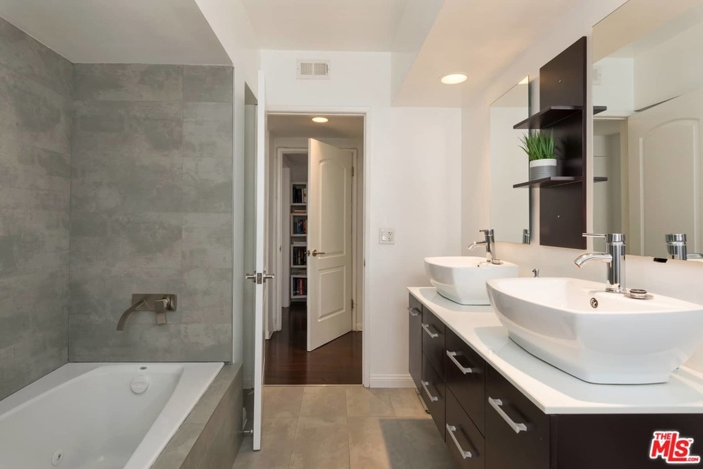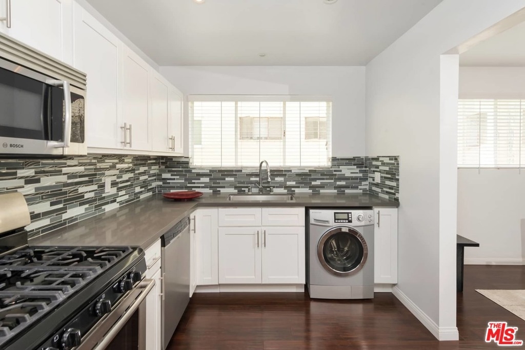 Luxury two bedroom, two bath plus den condominium in the Wilshire Westwood Terrace, one of the original low rise buildings on the prestigous Wilshire Corridor. Tastefully updated in acontemporary style and located in a coveted back-corner unit. Open concept floorplan, light and bright, and warmed by wide-planked wood floors throughout. A large living/dining area flows into the open cook's kitchen featuring Bosch stainless steel appliances including a washer/dryer. On the opposite side of the living area is an open den/media room with cozy fireplace. There's a spacious master suite with its own sitting deck, plenty of closet space and a wonderful master bath including a separate spa tub and shower with dual vanities. A second bedroom, nicely-sized, an adjacent guest bathroom with oversized glass-enclosed shower. Furniture isn't staging and can be sold with condo. Close proximity to UCLA, Westwood & Brentwood Villages, Beverly Hills and the 405. Located in the Warner Avenue School Dist.