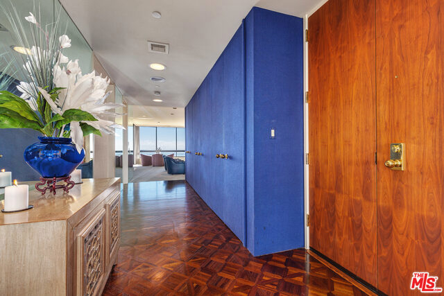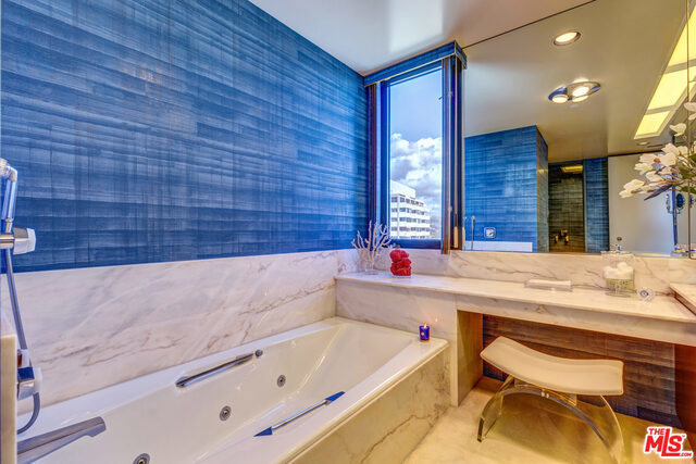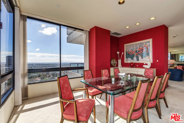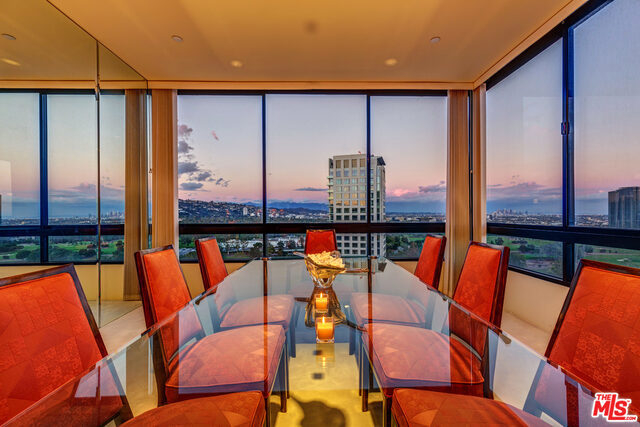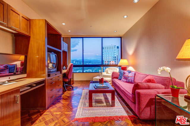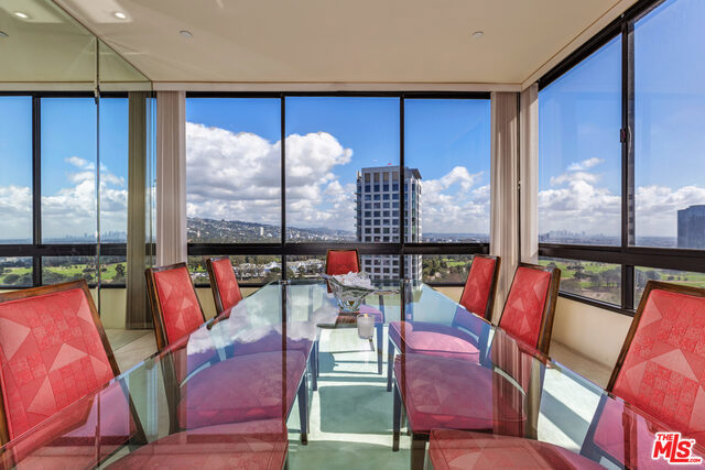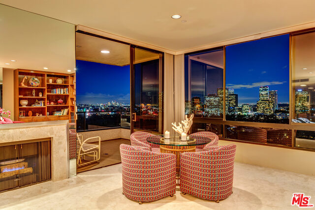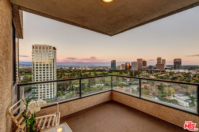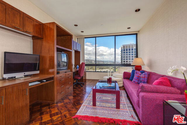 FABULOUS corner unit with South-East PANORAMIC VIEWS. Just spectacular scenery from Hollywood Sign to Beverly Hills, Catalina and the Ocean. Dramatic entrance onto 2,392 sq.feet of beautifully open floorplan. Luxuriously large Master Suite with ensuite bathroom and TWO walk-in closets. Wonderfully spacious 2nd Bedroom with ensuite bath. Gleaming hardwood floors in Den with wet bar and sweeping City views. (Can also be turned into your 3rd Bedroom!). HOA includes gas, water, earthquake ins., cable, internet, landscaping, 24/7 front desk and security, valet parking, gym, pool, sauna and newly remodeled lounge. Home was used as a 2nd home and rarely lived in and now shows the finest of design and furnishings of its day. Side by Side parking in security garage. PLUS bonus of locked storage cage for the Owner.