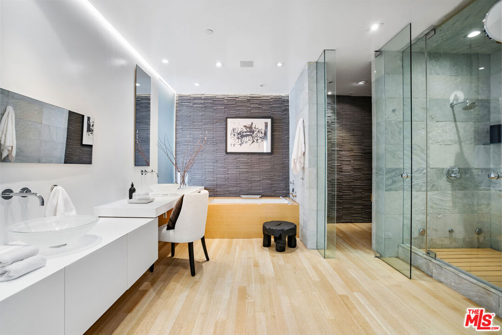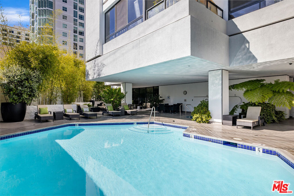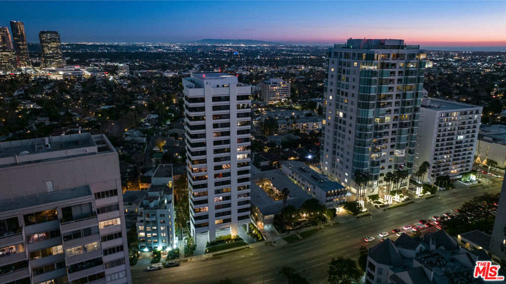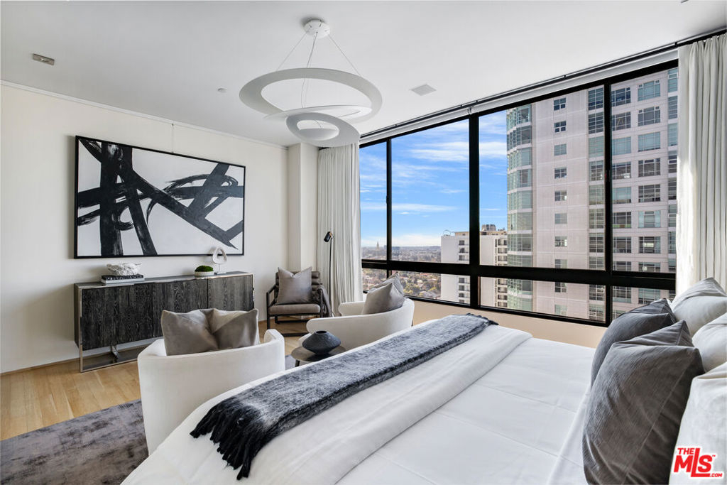 Elevate your luxury lifestyle with this 15th floor rare jewel in the highly desired Diplomat hi-rise, a 24-hour full-service building on the coveted Wilshire Corridor, adjacent to Century City and Beverly Hills. This southwest facing corner unit is almost 2,400 square feet with two bedrooms, three bathrooms, plus an office which could function as a third bedroom. The residence is adorned with floor to ceiling glass that showcases 280 degrees of breathtaking panoramic city, ocean, and mountain views which include the Center City skyline, The Queen's Necklace, Palos Verdes, Catalina continuing all the way to Malibu. Upon entering this impeccably designer done turn-key move-in ready property, you are met with solid rift oak wood flooring, high ceilings and a modern open floor plan flooded with seemingly endless sunlight. The oversized living room features an ethanol clean burning ventless fireplace which flows out to a spacious corner balcony and a full-sized formal dining area with wrap-around windows allowing you to enjoy ocean vistas during the day and unparalleled city light views at night. Continuing to the gourmet kitchen which consists of European custom-built-ins/cabinetry, a Thermador electric cooktop, Gaggenau double wall ovens, brushed stainless steel Liebherr refrigerator, freezer and built-in wine refrigerator which all surround a large waterfall center island. The primary suite is a sanctuary retreat with more floor to ceiling windows, opulent drapery, multiple closets, and an en-suite resort sized primary bathroom showcasing hand cut stones, charcoal stacked walls, rift oak trim, floating cabinetry with double sinks, private water closet, double steam shower, and large bathtub. The guest suite has large picture windows too, drapery, and an en-suite bathroom featuring a large walk-in shower, floating storage with a glass-top vanity, all surrounded by Japanese hand screened wallpaper. In addition to the two-bedroom suites, there is a large window walled office with a wet bar and commanding views. There is a dedicated laundry room, custom accented powder room, plus the entire unit is outfitted with motorized automatic roller shades, adding to the long list of features. There are two deeded side-by-side parking spaces and a deeded storage area too. The Diplomat is a sophisticated building which complements this unit's lavish lifestyle. Amenities include 24-hour valet service, front desk, security, a recreation room, all-inclusive gym, a sundeck, a heated pool, cabanas, and spa/hot tub. Plus, living on the illustrious Wilshire Corridor provides convenient access to all of Los Angeles which includes nearby world class shopping and dining in Century City and Beverly Hills.