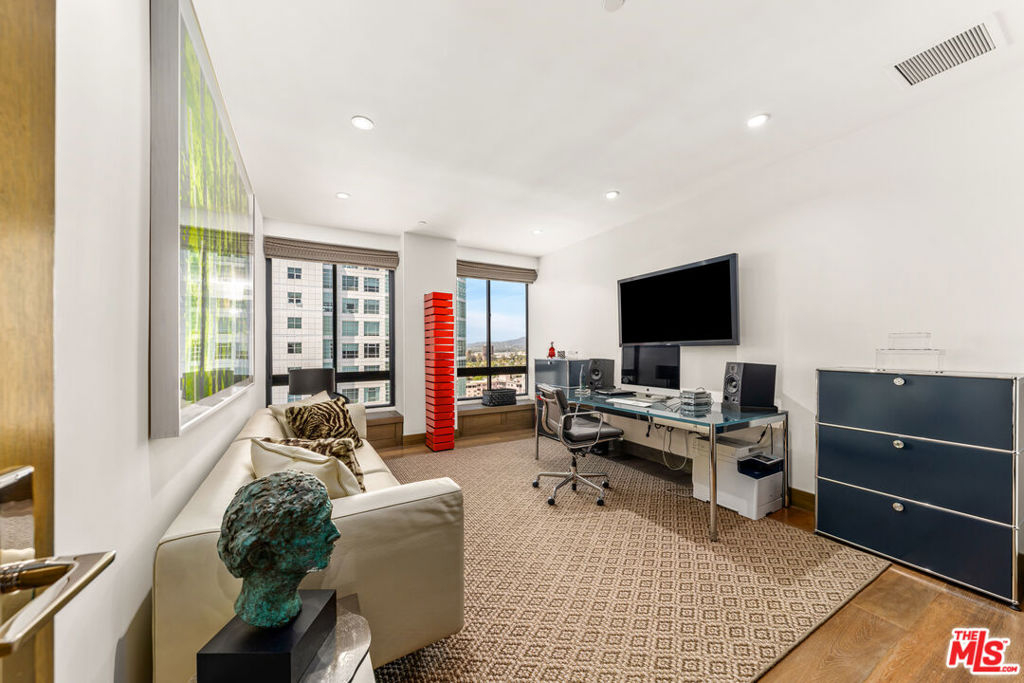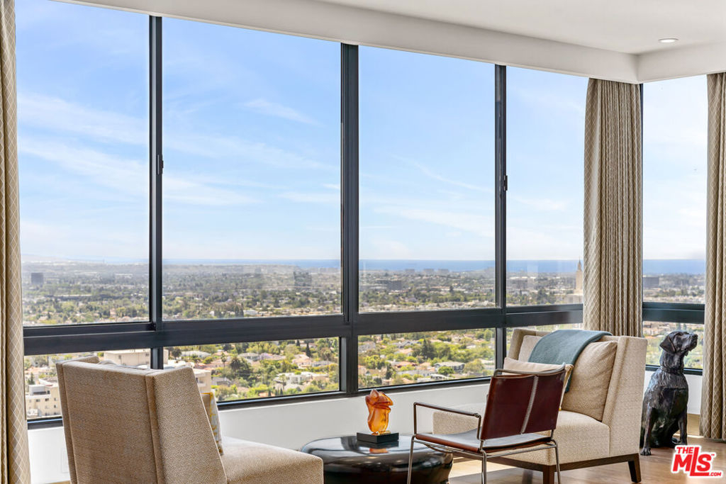 Junior PENTHOUSE with compelling south-west corner views extending from Century City to the Ocean. This residence is a true masterpiece in pristine condition, having been completely remodeled by the current owner; since that time used just infrequently as a guest unit. Curated with best in class materials and finishes, the public rooms are published-quality, light-filled spaces, evocative of a contemporary museum's reading room...from the cabinetry, to the mouldings, doors and meticulously crafted millwork, a home without peer, updated with no expense spared. The warm modern palette provides an ideal backdrop for sophisticated luxury, with floor-to-ceiling windows and the cherished rear corner views capture, dazzle and delight at every turn. A formal entry with stylish powder room leads to an open concept plan, with large living room featuring a fireplace, walls for art, beautiful built-in library bookcase with rolling ladder, all flowing to a large view terrace. The gourmet kitchen features top flight cabinetry and trophy appliances. The adjacent dining room can accommodate large formal gatherings while overlooking the City. Two perfectly appointed bedroom suites, including a luxurious primary suite, worthy of a 5-star resort with 4 closets, incredible bathroom with oversized shower, tub and separate water closet, plus a guest bedroom suite with a beautiful bath. All of this, plus a large, separate den/study. Additional state of the art features include: custom auto window treatments, fully outfitted closet spaces, recessed lighting, laundry room, updated dual zone HVAC system and electric car charger. The Diplomat is a full-service building featuring 24-hour front desk/security, valet parking, gym, pool, spa, extra storage and only four units per floor. HOA dues are $3,208/month and include earthquake insurance, water and building amenities. A rare find in today's market where condos typically need extensive work or are formulaic, tiresome spec-flips with finishes that will feel outdated in only a few years.