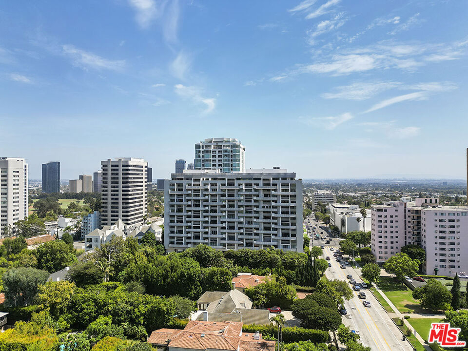 An exceptionally light, bright and airy unit in the incomparable Wilshire Terrace co-op. This approx. 2,000-square-foot unit is ideally located on the north side, overlooking peaceful gardens, fountain, and landscaped grounds.The open-plan 2 bedroom, 2.5 bath unit has been renovated with plank hardwood floors, distinctive light fixtures. Large walls suited for art with an open flow from living area, dining area, and media room/den with gas fireplace. Sliding Fleetwood doors lead to central two-story patio from living room, den and office, all part of the building's distinctive design that offers ample space for outdoor entertaining. The second bedroom has been opened to the primary suite, creating an adjacent office/ sitting room closed off with pocket doors. Can easily be converted back to a separate bedroom. Fitted Siematic kitchen is equipped with Sub-Zero fridge and Miele ovens. Separate laundry room with half bath. The sale of the property includes unit 2C and the housekeeper's unit MR115. Units are to be sold together, both in "As-Is" condition. Some furniture may be included in the sale.