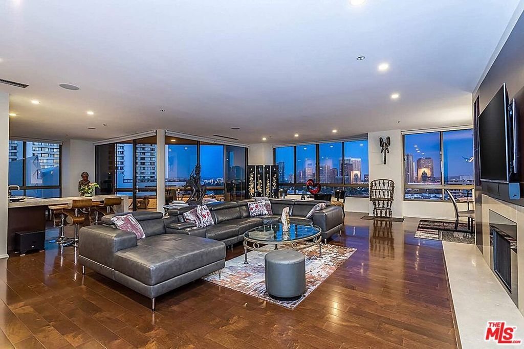 Move into this spacious and bright 2 bedroom, den, & 2.5 bath southeast corner unit in a five-star full-service building.The open floor plan features 2 ensuite bedrooms and a private terrace that opens up from the living room and den to stunning views of the Century City skyline, downtown LA, and ocean. Packed with contemporary finishes, the unit features hardwood floors throughout, a grand living area with a fireplace and is equipped with electric blinds and large windows that fill the rooms with natural light. Perfect for entertaining. Additional unit highlights include a formal entry, chef's kitchen, sound system throughout, and Nest climate control. Located opposite from the en suite guest bedroom, the large private primary suite has a large walk-in closet and grand bathroom with separate tub and shower. The unit also features in-unit laundry and a powder room. The buildings full-service amenities include 24/7 concierge & valet, gym, pool, spa, conference room, charging stations for electric vehicles. Located minutes away from fine dining & shopping in Century City and Beverly Hills.