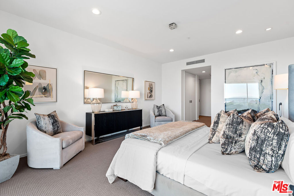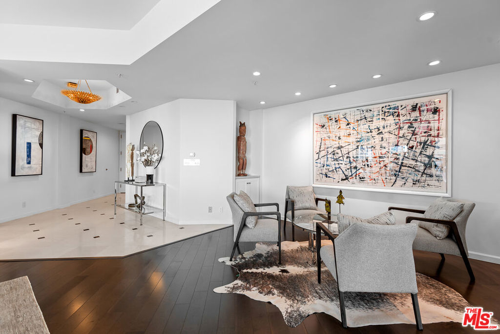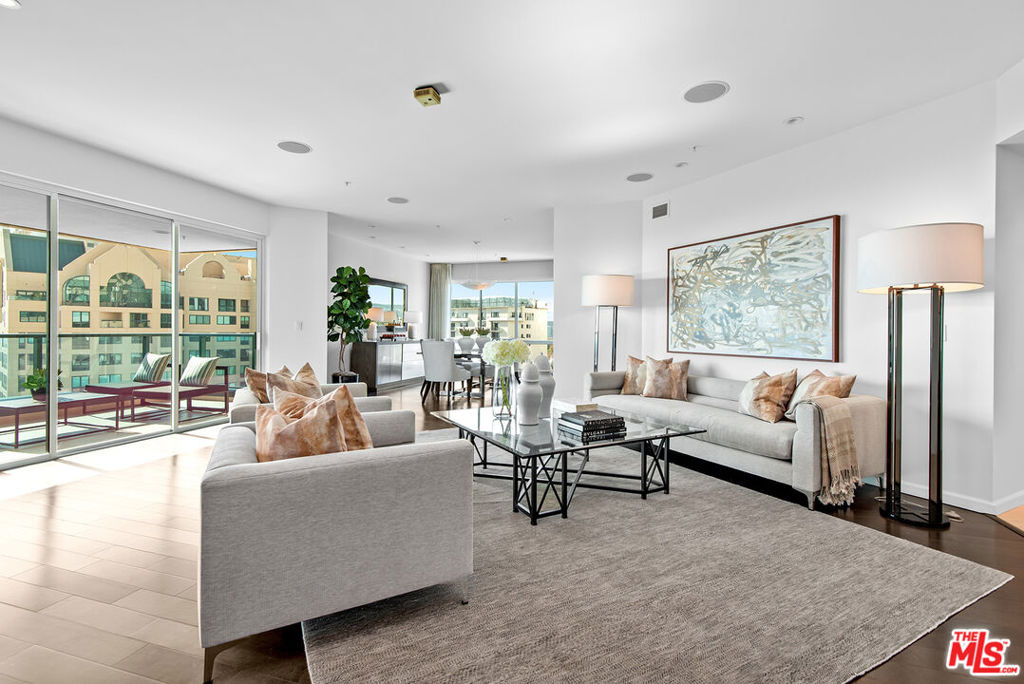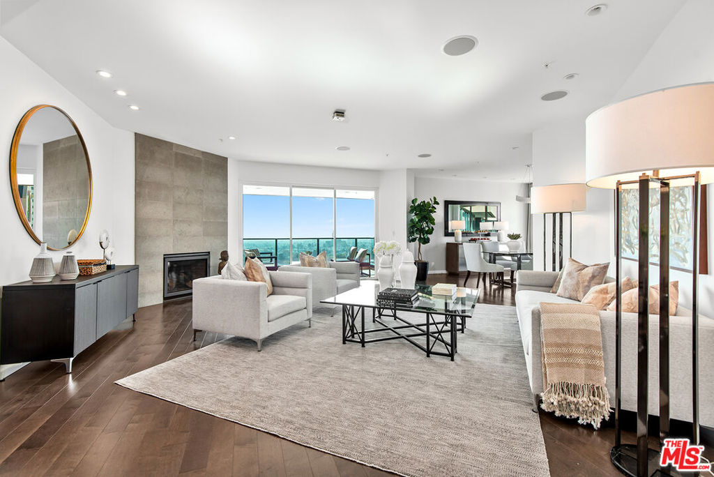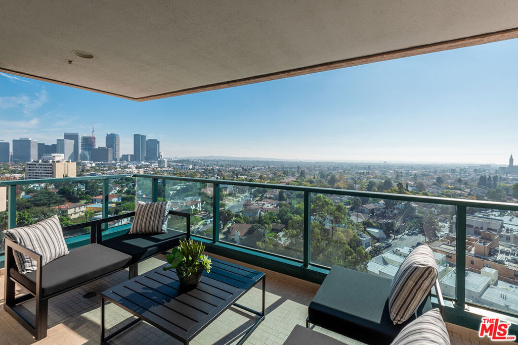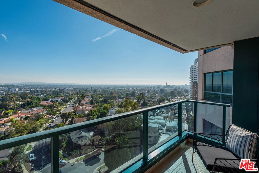 New price; new look! Newly painted, carpeted & staged. If you think you've seen this unit, please come and see it again. Luxurious 2 bedrooms + den, 2.5 baths, 2776 sq ft condo in Wilshire Corridor's coveted Blair House. Panoramic views of Century City, the Pacific Ocean, and the San Gabriel Mountains! Light and bright with southern and western exposures, this unit features a tastefully remodeled kitchen & updated baths, beautiful hardwood floors, recessed lights, a fireplace, and two balconies. The grand living room with a dining area is perfect for entertaining. The fantastic cook's kitchen includes a Wolf range and breakfast area. The primary bedroom includes a balcony, walk-in closets, a large bath with 2 sinks, and a separate shower and spa tub. The second bedroom showcases beautiful views, ample closets, and an ensuite bath. Large laundry with side-by-side washer & dryer, lots of storage, and 2 HVAC units. Two side-by-side garage parking spaces with a private electric car charger and storage unit. Amenities at full-service Blair House include tennis court, a saline pool & spa, sauna, gym, private meeting or banquet room, 24-hour security, valet.