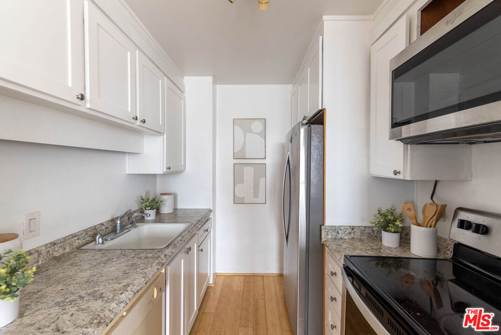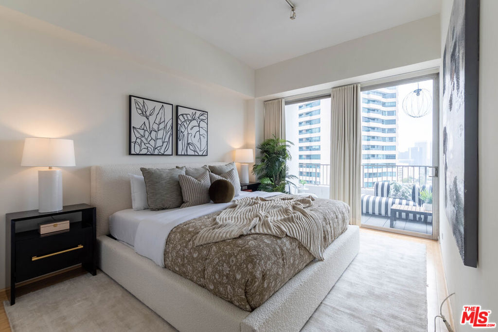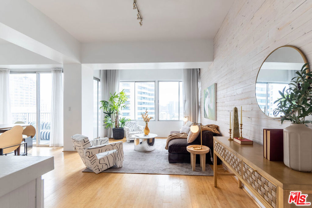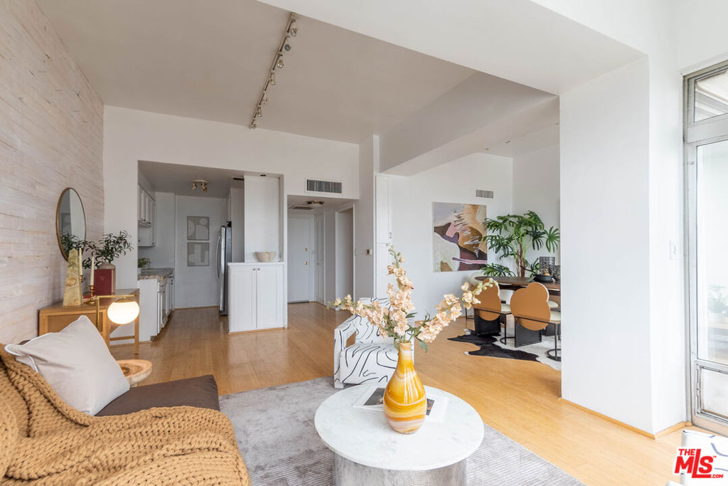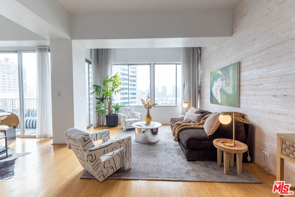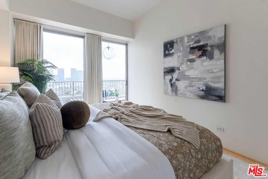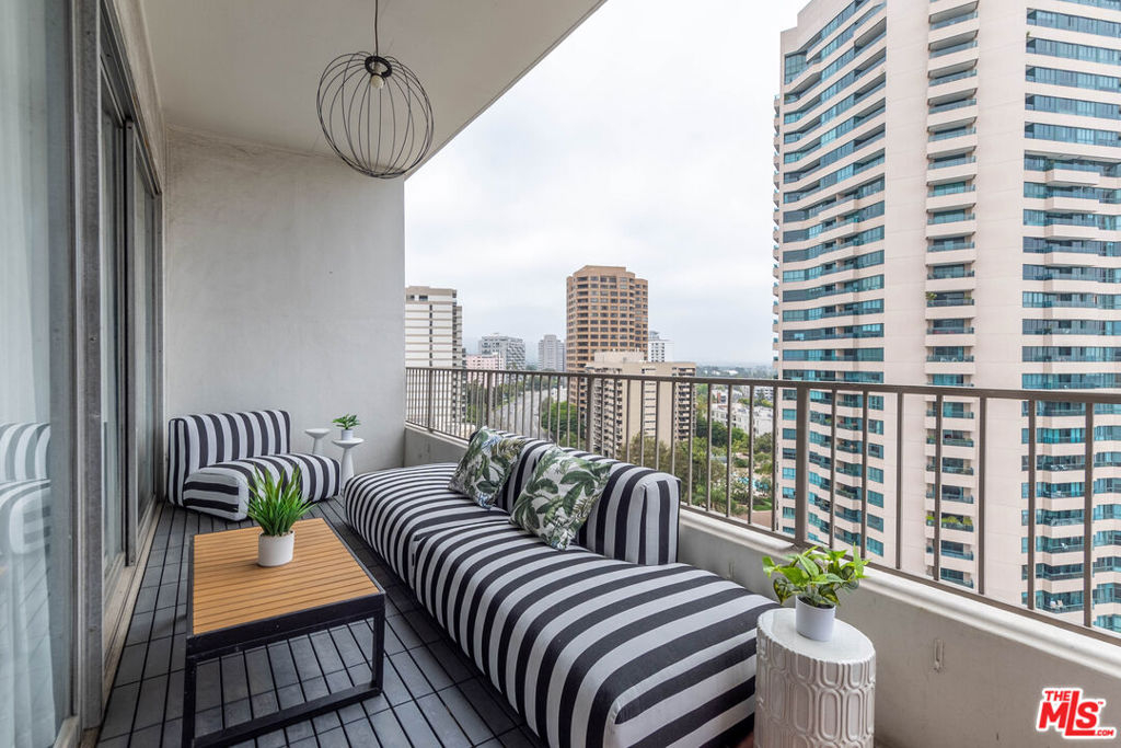 Beautifully remodeled condo with Century City views! Stunning, totally remodeled 1 Bedroom plus den/study with ultra high ceilings ,lovely hardwood wood floors, open kitchen with updated appliances. Conveniently located on the Wilshire Corridor near UCLA and Westwood. Building has 24 hour concierge, valet parking, pool, gym, sundeck, spa, banquet facilities, conference room, guest rooms & more. 2 Laundry rooms on your floor plus an additional community laundry on 5th floor. HOD includes utilities plus direct tv. Internet not included. One parking space + guest parking.