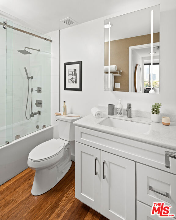 Fall in love with this beautifully renovated condo with designer finishes and astounding city views in the highly coveted, full-service Wilshire Regent. The open floorplan is accented by high ceilings and expansive glass sliding doors that flood the condo with natural sunlight and frame stunning views of Century City, Beverly Hills and beyond. Step out onto the massive balcony, perfect for al fresco dining and entertaining. The luxurious kitchen has stainless steel appliances, quartz counters & glass tile backsplash, and the dining alcove features an Arteriors chandelier. The elegant bedroom has large windows and a sliding door to the balcony. The bedroom has a large custom built walk-in closet, and three additional custom closets. The gorgeous bathroom features Porcelanosa tile, rain shower head, LED backlit mirror with storage, and beautiful vanity. Lutron smart home lighting throughout. Luxurious amenities include a newly renovated fitness studio, pool, lounges, valet parking, 24/7 doorman & more. Extra storage unit included. Move in today & relish your central location, moments from Westwood Village, Beverly Hills, Century City and Brentwood, and the best shops, restaurants and dining the city has to offer. ALL UTILITIES ARE INCLUDED IN HOA: electric, wifi, cable, amenities, parking.