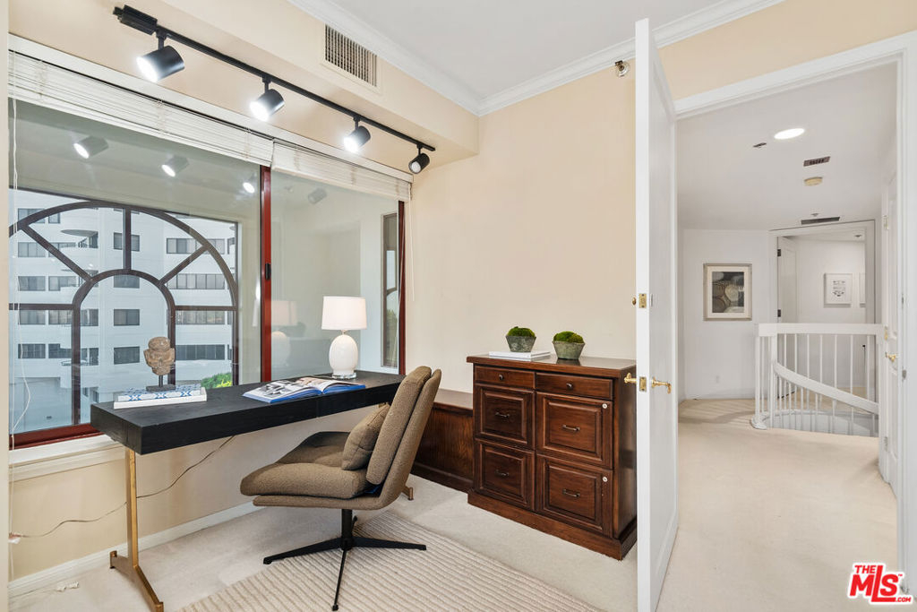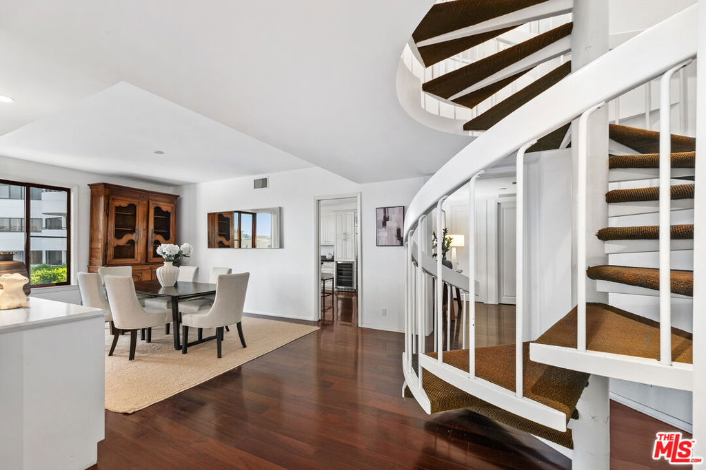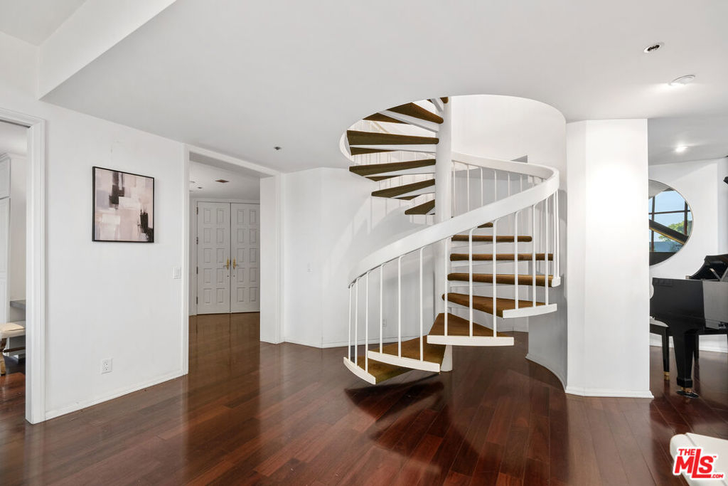 HUGE PRICE REDUCTION! Stunning loft-style New York vibe corner unit with architectural appeal and concierge living at Wilshire Thayer! Contemporary high-volume 2 bedroom, 2.5 bath pied-a-terre, featuring 2-story high floor-to-ceiling Roman-style window, gorgeous hardwood floors, dramatic 3-dimensional spiral staircase, massive wall space for fine art, bold visuals throughout, and enough flex-space for media, even a Baby Grand. This stylish showpiece needs work, but is bursting with artistic flair - ideal floorplan for entertaining! Gourmet kitchen, granite counters, wine fridge, kitchen counter/bar, pantry built-ins and and bonus workspace. Expansive Primary: floor-to-ceiling closets, built-ins, walk-in, dual sinks, large jacuzzi tub, separate shower, separate bidet and commode. Ensuite Second Bedroom can be an artist's retreat or in-home office. Elevator access to both levels, enclosed laundry, bonus storage/closets. 24-hour Doorman/Concierge. Fantastic location near UCLA, Cedars-Sinai, Rodeo Drive, Restaurant Row, Century City. All this, a short drive to scenic Paradise Cove. Valet entry/exit on Thayer. High-volume flex-space corner units of this caliber are scarce - WRITE AN OFFER!