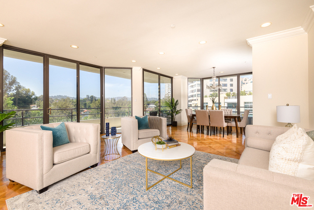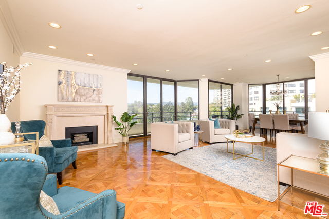Enjoy panoramic views from a prime location on the Wilshire Corridor! Located in the world renowned, full service building - Wilshire House. This beautiful 2 bed/2.5 bath rear facing condo has an open and light filled floor plan w/ over 2,000 sq ft of living space. The unit features beautiful hardwood floors, private wrap around balconies, fireplace & recessed lighting throughout. Step into the Formal living room which boasts unobstructed tree top views of Holmby Hills & opens to an impressive dining room encased in windows. Chef's kitchen includes stainless steel appliances, marble countertops, custom cabinetry & breakfast area. The Master suite is the ultimate retreat including a large walk-in closet with custom cabinetry, private bathroom with deep soaking tub & beautiful panoramic views. Building amenities are 24 hr valet parking, concierge, pool, fitness center & security. Don't miss your opportunity to live in one of the most highly desired buildings on the Wilshire Corridor!!