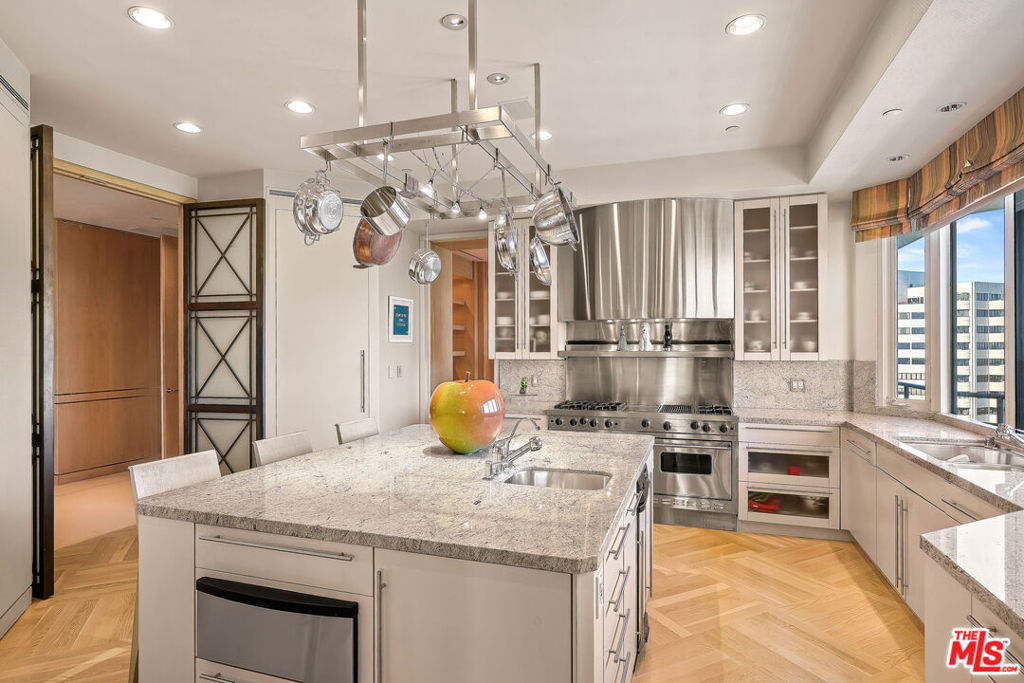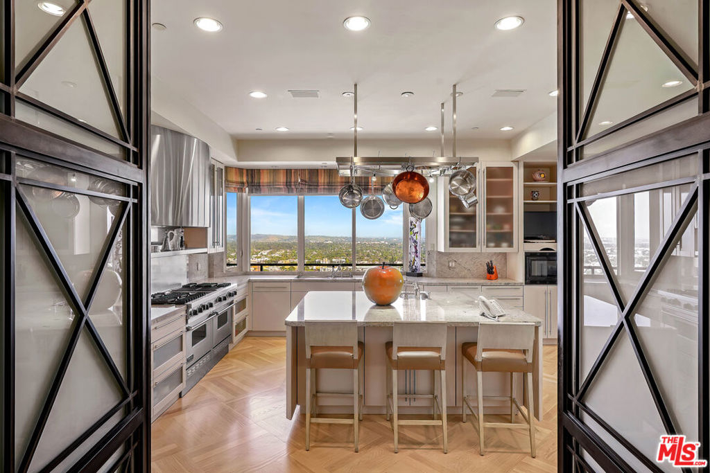 With its premier placement on the Wilshire Corridor, this single level unit in the Wilshire House is the perfect blend of prestige and contemporary style. Designed by internationally acclaimed Bauhaus architect Victor Gruen, the Wilshire House is Los Angeles' foremost luxury high-rise. The building boasts a wealth of amenities to enjoy, including a professional fitness facility, tennis court, pool, sun deck, library, meeting rooms, doorman, valet parking, and 24/7 concierge and security.Situated on the coveted Wilshire Corridor, you'll be mere minutes away from world class dining, shopping, and entertainment in Beverly Hills, Century City, Bel Air, and Westwood. Directly from the elevator, you'll enter your personal and secure lobby, which welcomes you into this fully custom 3 bed 5 bath unit. Proceed into the expansive living, family, and dining rooms where you'll find automated doors to separate or conjoin the space, and floor to ceiling windows that provide unobstructed city, mountain, and ocean views. Step outside and take in the sights, then soak up the breathtaking sunsets on the wraparound terraces and balconies. Make your way back inside to the gorgeous kitchen, which is equipped with beautiful granite countertops, a spacious island, two pantries and ample storage. From the kitchen, you'll have access to the intimate wet bar, card room and separate breakfast area. Pass through the hallway while strolling to the Primary Suite, where you'll find extensive custom built-ins, perfect for the art aficionado or collector. The primary suite, complete with dual walk-in closets as well as dual en-suite sumptuous bathrooms, featuring a separate steam and sauna will be your own personal haven of grandeur and comfort. The remaining two bedrooms are spacious, inviting, and picturesque, each offering additional stunning views. With this unit, you'll be able to enjoy the best that the Wilshire Corridor has to offer, all while being able to retreat to your private penthouse sanctuary. For a chic and opulent home, this is one you can't miss!