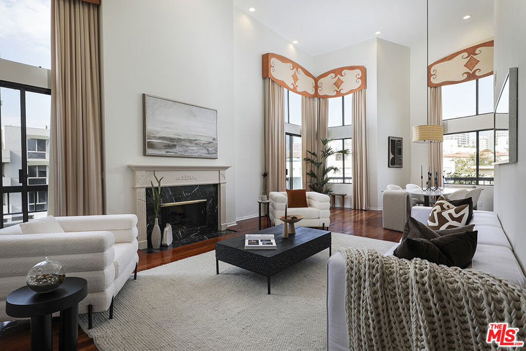 Modern Prime Westwood - Top Floor Penthouse with Loft & Rooftop Patio: This expansive corner unit offers 3 bedrooms, 2 bathroom. loft can be used as 3rd bedroom, featuring 20-foot soaring ceilings and rich hardwood floors that enhance the open and airy floor plan. The living and dining areas include a cozy fireplace, bar, floor-to-ceiling windows, and wraparound balconies. The eat-in kitchen boasts granite countertops and a large window for natural light. The primary suite features two closets and a luxurious marble bathroom. A standout feature is the separate loft with a closet and access to the private rooftop patio. Additional amenities include an in-unit, side-by-side full-size laundry area, abundant closets and storage, and low HOA dues covering access to a private pool, sauna, gym, as well as water and trash services. The building offers secure parking with elevator access via a security key, along with two tandem parking spaces. Located just minutes from Century City, Westfield Mall, AMC Theaters, UCLA, and Beverly Hills.