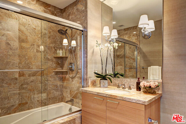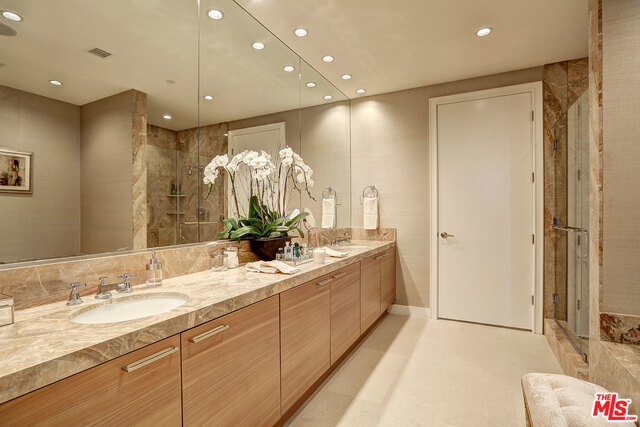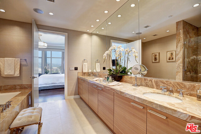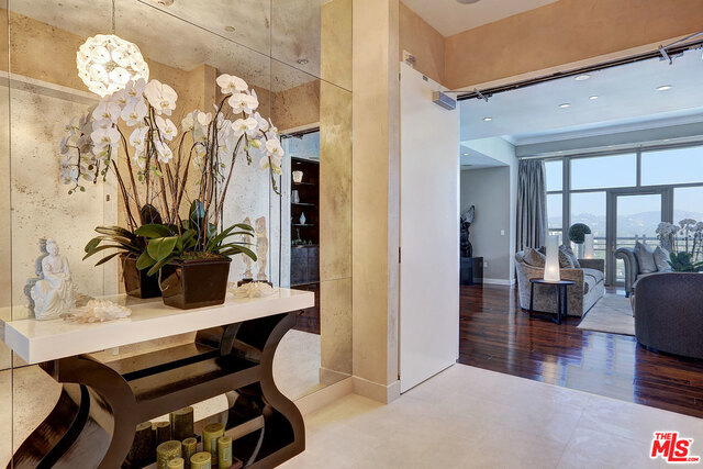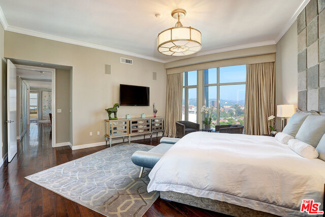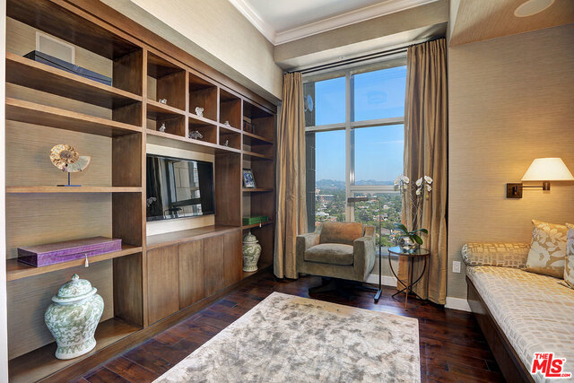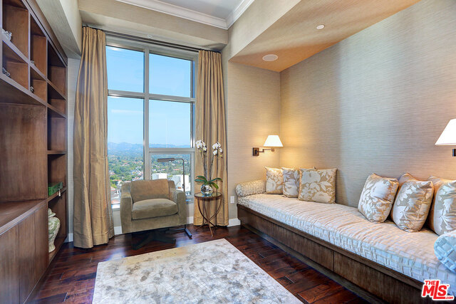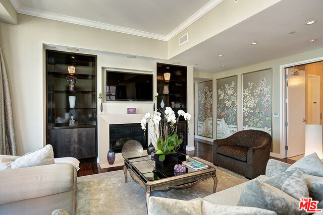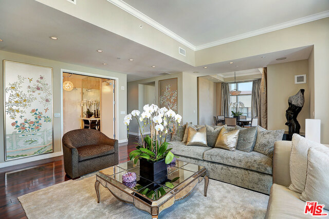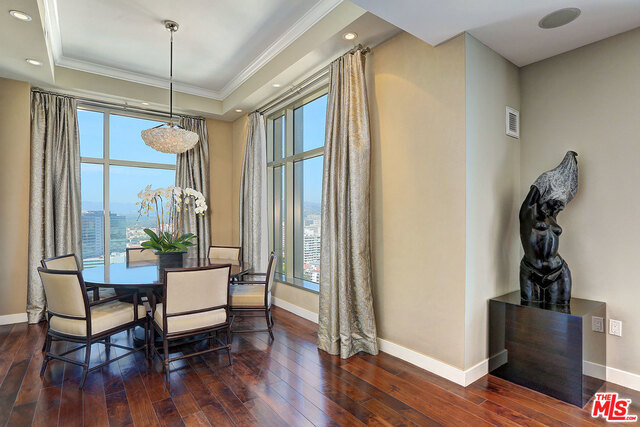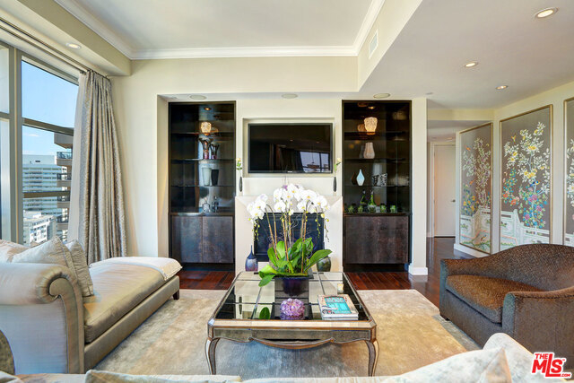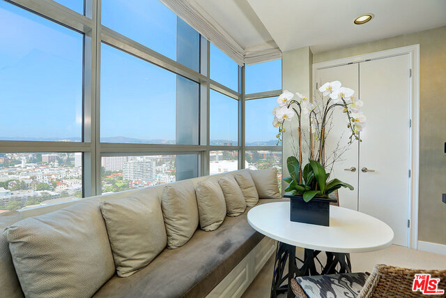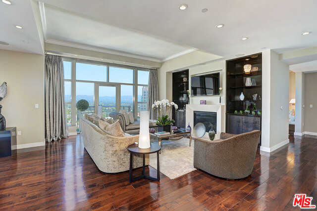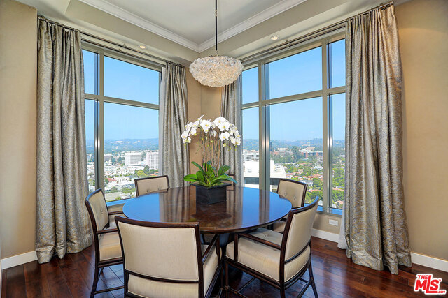 The ultimate in luxury at The Carlyle on Wilshire. North & South West facing unit with high ceilings & exceptional views of Westwood, Bel Air & the Wilshire Corridor. Elegant formal entry, stunning wood floors throughout, sumptuous living room with fireplace & spacious balcony with views. Distinctive dining room with dual windows & city views, wonderful kitchen with center island, sitting & eating areas beneath a fabulous picture window. Off the living room is a wonderful den room with built in lounge, flat screen TV & powder room for guests. The East side master suite has a sitting area & picture window & huge closet. The master bath has dual sinks, stunning marble counters & floors, soaking tub with separate shower & toilet area. The second bedroom is on the South West corner of the unit with dual windows overlooking Westwood to the South with full en-suite bathroom & spacious closet. The unit has it's own laundry room inside, huge storage room & separate wine locker downstairs.
