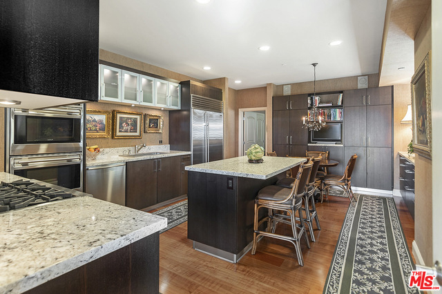 Great opportunity for a buyer who wants to be on a lower floor in one of the most prestigious full-service buildings on the Wilshire Corridor, the Californian. Light and bright, this unit is apx. 3,290 sq.ft. with 2 bedrooms and 2.5 bathrooms, and Southeast facing overlooking beautiful city views. Controlled access with elevator opening directly into the private foyer. Spacious living room with fireplace, balcony, and adjacent dining area. Gourmet eat-in kitchen featuring professional appliances, abundant cabinetry, stone countertops, and center island with breakfast bar. The large master suite offers custom dual walk-in closets and bath with double vanity. The second bedroom is currently being used as a den. Powder room, laundry room, and service entrance. Building amenities include 24 hour valet and concierge, conference room, banquet room, screening room, gym, pool with private cabanas, spa, and temperature-controlled wine storage for each unit.