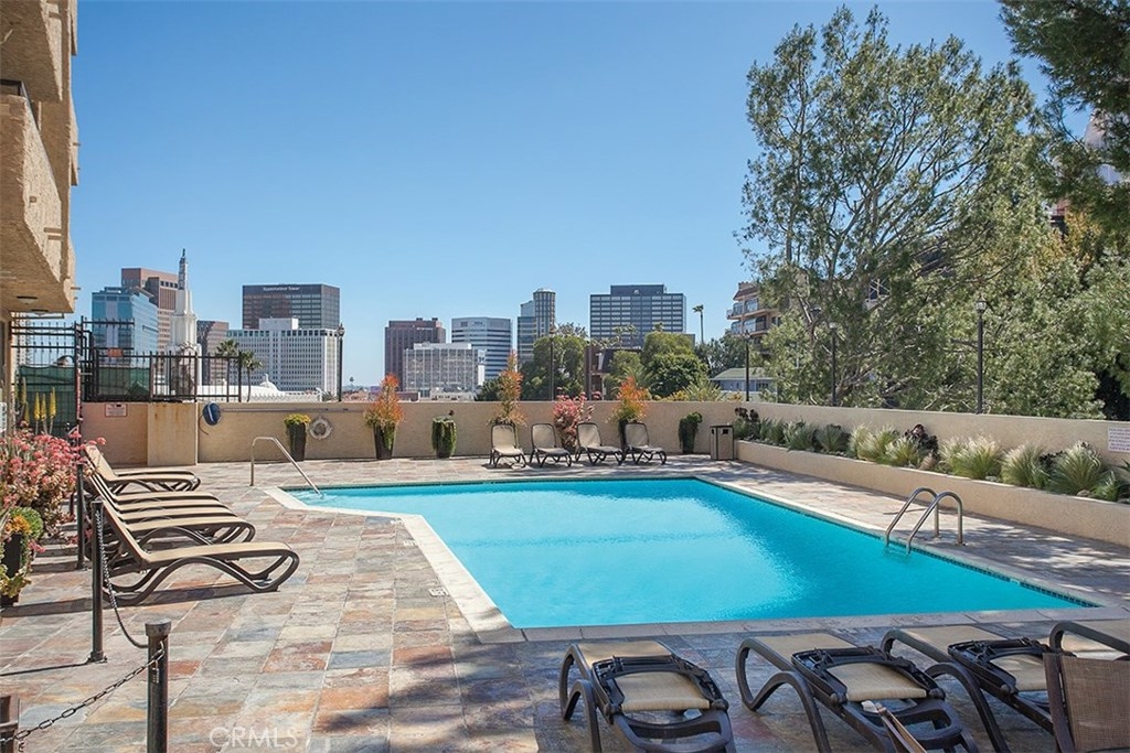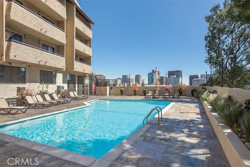 Fantastic One of a Kind unit situated on the top floor, this completely move-in ready loft-style condo is one of the most sought-after in the community thanks to its desirable floor plan, unique features, and great location within the complex. Bright, natural light pours in from a skylight, creating an airy living space boasting high, vaulted ceilings and beautiful appointments like granite countertops, stainless steel appliances, and custom cabinetry.Nestled only minutes from UCLA campus and the medical center in the heart of Westwood, this condo showcases sliding glass doors that open to a private balcony-the perfect place to enjoy stunning sunsets and nighttime cityscapes. Parking is a breeze with TWO included side-by-side parking spots, and an extra storage space within the unit gives you the extra space you need. Discover the quintessential urban lifestyle with an array of wonderful amenities at your fingertips, including a resort-style pool, two gyms, BBQ area, lounge area, conference room, laundry facilities, controlled access and secure covered parking, and a full-time management staff. Association pays for sewer, water and hot water.