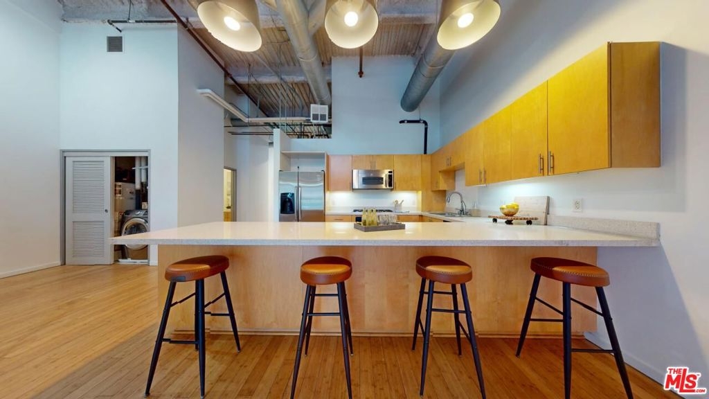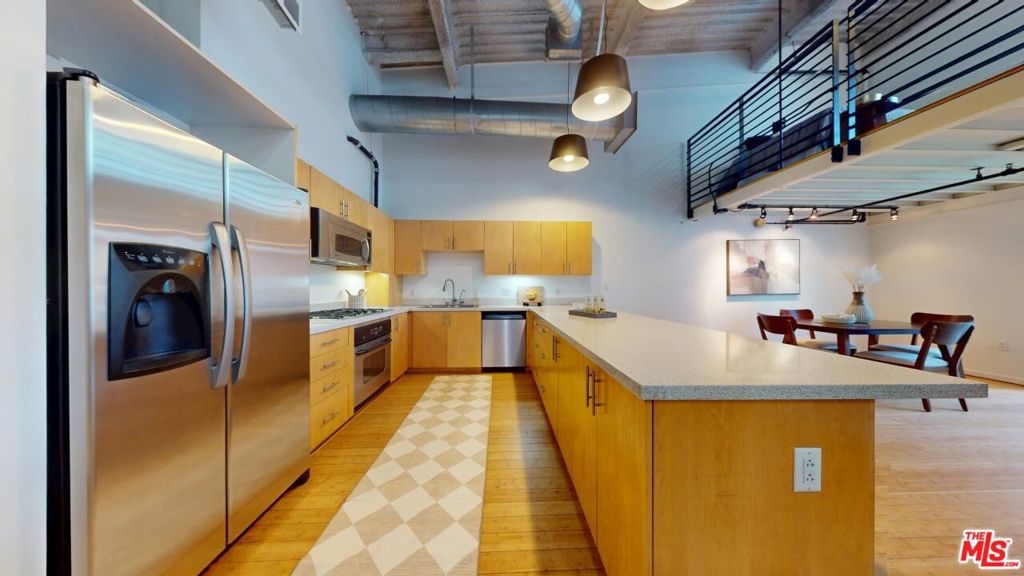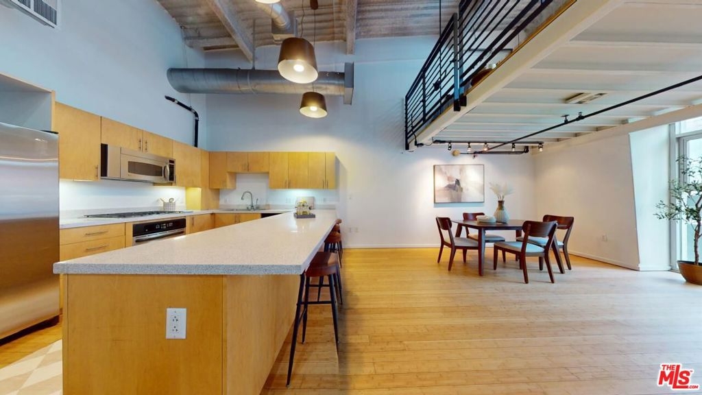 PRICE REDUCTION!!! Beautiful 2-story PENTHOUSE level loft at the legendary Flower Street Lofts. The Property features approx. 15-18 feet ceilings with an approx. 300 sqft. 2nd story mezzanine that can be used as 2nd BR/office/work-out area. Recent work done incl. wood floors resurfaced through-out, fresh paint through-out, kitchen cabinets resurfaced, and a brand-new shower pan. West-facing floor plan with "Juliette" balcony, with views of up-coming Oceanwide Plaza from floor-to-ceiling living room windows, and views of common area outdoor hallway from the bedroom windows. One of the very few buildings in South Park zoned and fully entitled for Live/Work. HOA incl. 2 reserved parking spaces (1 covered, 1 uncovered), and Spectrum package that incl. WiFi Internet, Basic Cable + HBO MAX & Showtime, 1 NVR, & 1 NR Recording. It's a GREAT time to invest & live in DTLA: BILLIONS of $ going into DTLA development in prep for the 2026 World Cup & 2028 Olympics, incl. newly paved streets everywhere, plus exciting new construction in the neighborhood. Neighborhood amenities incl. Crypto.com Arena, Ritz-Carlton, upcoming Oceanwide Plaza, Cana Rum Bar, Prank Bar, Hygge Bakery, Starbucks, Pine & Crane, South Park Pharmacy & Grocery, Orange Theory Fitness, Ralph's Fresh Market, Whole Foods. moments from all of South Park's other restaurants and hot spots. AGENTS SEE PRIVATE AND SHOWING REMARKS!