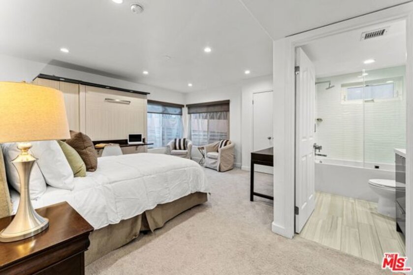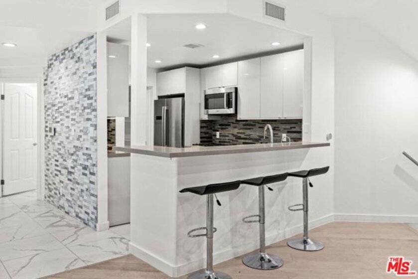 Experience the best of Brentwood living in this beautifully updated tri-level corner townhome. With approx. 1,600 sq.ft. plus a bonus room ideal for a home office or gym.Enjoy direct entry to a private 1-car garage plus 2 additional secured parking spaces, an open-concept floorplan with great natural light, and stylish finishes throughout, including tile and engineered hardwood flooring, recessed lighting, and built-in speakers. Brand new water heater. The remodeled kitchen features Bosch stainless steel appliances, Caesarstone countertops, a breakfast bar, and ample pantry/storage space. Both bedrooms are generously sized with en-suite bathrooms, and the living room and primary suite each offer a granite fireplace for added warmth and charm.All just moments from UCLA, top Brentwood shops, markets, restaurants, cafes, and convenient freeway access.