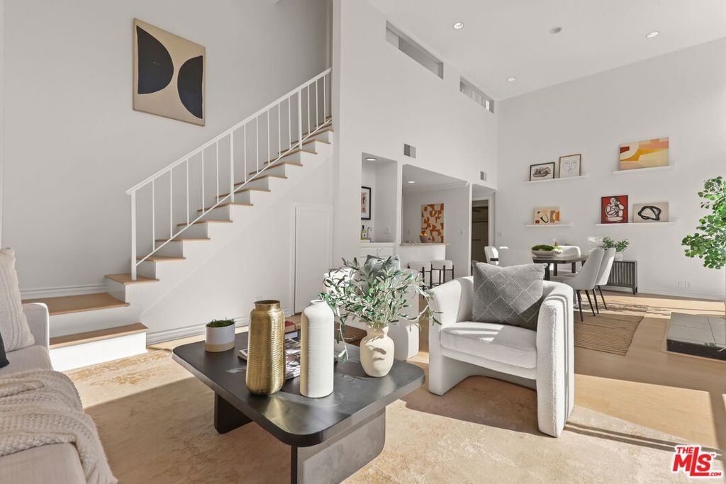 **OFFER DEADLINE MONDAY MARCH 2ND 12PM** 1164 Wellesley Ave #302 is a stunning, refreshed top-floor residence in a contemporary boutique building, ideally located in the heart of Brentwood. Positioned along picturesque, tree-lined Wellesley Avenue and surrounded by multi-million-dollar homes, this exceptional two-level unit blends modern sophistication with effortless California living. Bathed in generous natural sunlight, the home features soaring ceilings and an airy open floor plan that seamlessly connects the living and dining areas making it perfect for both everyday comfort and elevated entertaining. Arrive home to your very own sanctuary full of light with all of the touches you need including recessed lighting, fresh floors, fresh paint and a polished aesthetic throughout. The main living space is anchored by a stylish fireplace and enhanced by expansive windows that flood the home with light. The thoughtfully designed kitchen offers stainless-steel appliances, ample cabinetry, and a breakfast-bar that balances beauty and functionality for the culinary enthusiast. The spacious primary suite serves as a private retreat, complete with a walk-in closet and an ensuite bath with dual vanities. A well-appointed second bedroom completely separated upstairs with its own ensuite bath and large walk in closet provides flexibility for guests, can serve as a home office, or be an additional primary living space. What truly sets this residence apart is its two-level layout and full private rooftop patio and exceptional outdoor extension of the home. Perfect for entertaining, dining under the stars, or relaxing in the California sunshine, this expansive rooftop retreat offers privacy and sweeping treetop and city views rarely found in Brentwood condominiums. Additional highlights include ample interior storage and an in-unit laundry area accommodating a full-size washer and dryer. As a top-floor unit, you'll enjoy maximum privacy and tranquility. The property is nestled moments from Brentwood Village, Wilshire Boulevard, the renowned weekly Farmers Market, Westwood, UCLA, Santa Monica, and the beach. This residence truly places you in the mix of premier dining, shopping, and entertainment right outside of your doorstep.