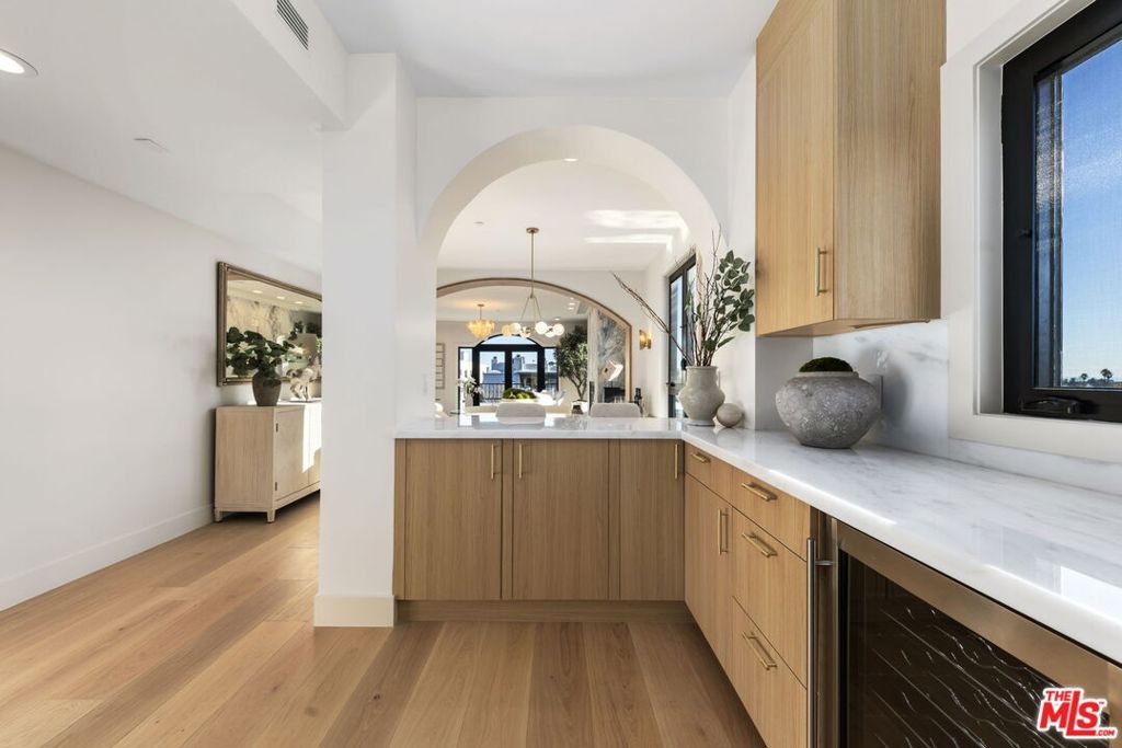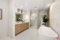 This prime Brentwood residence is the ultimate in luxury condominium living. Halston House is a bespoke collection of eight condominium residences right in the heart of Brentwood. All of the residences comprise three bedrooms, a family room and 2.5 bathrooms. Elegantly appointed living spaces include gracious living rooms with wide-plank oak wood flooring, fireplaces, large windows and French doors that allow natural light to pour in. The family rooms offer built-in cabinetry, creating an ideal setting for a media room or office. Gourmet kitchens feature Italian Dolomite countertops with full-height backsplash, custom oak cabinetry, stainless steel appliances, glass-front refrigerators and wine refrigerators. The serene primary bedrooms are complemented by spa-like bathrooms with hand laid herringbone limestone, dual sinks, a separate soaking tub, a walk-in shower, and expansive custom-designed walk-in closets. Additional features include built-in speakers, dedicated power for EV chargers, private package delivery lockers in the lobby and additional large private storage in a locked storage room. Halston House was thoughtfully designed with elegance and privacy as a guiding principle.