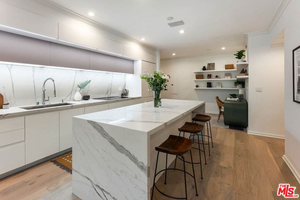 A rare opportunity to own a turnkey residence offering exceptional value in a prime location. 132 N. Swall is a stunning 2-bedroom, 2-bath residence located in one of Los Angeles' most desirable neighborhoods. The open-concept living space is sophisticated and inviting, perfectly designed for both relaxed living and effortless entertaining. Contemporary finishes, sleek hardwood floors, and a spacious, thoughtfully designed layout create a seamless flow throughout the home.Unit 101 features a coveted oversized patio, offering exceptional indoor-outdoor living ideal for al fresco dining, morning coffee, or enjoying the California sunshine. The chef's kitchen is equipped with custom Miele appliances, including a built-in coffee system, wine cooler, and induction cooktop.Ideally situated within walking distance to Robertson boutiques, Beverly Hills and West Hollywood shopping and dining, and Cedars-Sinai Medical Center, this home combines luxury, convenience, and lifestyle.