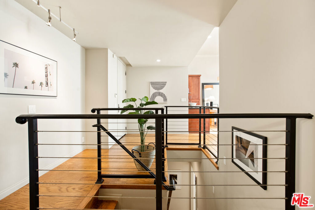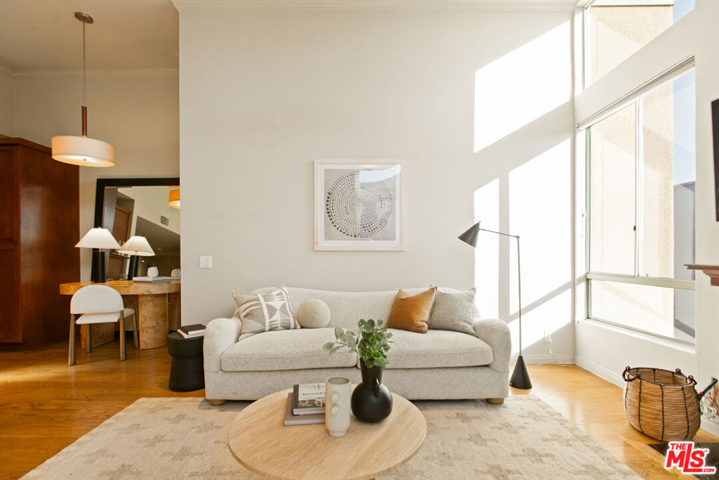 Experience elevated living in your top-floor 2 level penthouse condo, offering the desired blend of space, light, and modern design. Soaring ceilings and oversized windows flood the open-concept living space with natural light and a large patio balcony, while 2 levels provide distinct areas for relaxing, entertaining, and working from home.The sleek galley kitchen features stainless steel appliances, including new dishwasher and fridge, ample cabinetry, convenient stackable laundry and a versatile flex-space counter ideal for folding laundry or easy serving for entertaining. The dedicated private lower level primary suite, with a walk-in closet, en-suite bathroom, and sliding door access to an expansive private balcony creating a true retreat within the home.The guest bedroom with sliding doors connects directly to the main level patio balcony and the full guest bathroom with tub/shower provides convenience for guests. Highlights include new HVAC and only 1 shared wall for enhanced privacy, 2 generously sized side-by-side parking spaces and private inside and garage storage.The building underwent a full renovation in 2008 and offers a secure, new video call system, modernized fire alarm, newer siliconed resurfaced roof, a modern lobby, and wide, welcoming hallways all contributing to a quiet, well-maintained, and professionally managed community.This penthouse delivers on value, privacy, sophistication, and is located close to shopping, grocery, and restaurants. Welcome to your next level.