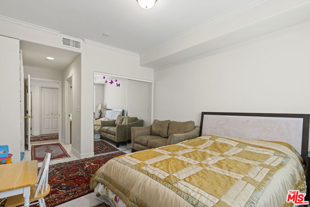 An exceptional offering in a coveted boutique building, this spacious front-facing residence spans over 1,700 square feet and is ideally situated south of Beverlywood, moments from the finest destinations in Beverly Hills. Designed for refined living and effortless entertaining, this 2-bedroom, 2.5-bath home showcases an elegant single-level floor plan filled with natural light and timeless finishes throughout. A formal entry leads to a grand living room anchored by a fireplace, seamlessly flowing into a dedicated dining area and a private balconycreating a sophisticated yet inviting atmosphere. The generously proportioned primary suite serves as a private retreat, featuring extensive closet space and a spa-like en-suite bathroom with dual vanities, a soaking tub, and a separate glass-enclosed shower. The secondary bedroom offers exceptional versatility, ideal for guests, a home office, or both. Thoughtfully appointed with granite countertops, stainless steel appliances, recessed lighting, hardwood flooring, high ceilings, and abundant storage, the residence blends luxury with everyday comfort. Additional conveniences include in-unit laundry, central HVAC, two secure parking spaces, controlled building entry, and access to an on-site fitness center. Just minutes from Beverly Drive, Century City, Rodeo Drive, and world-class dining, shopping, and entertainment, this rare single-level condo presents an outstanding opportunity to own in one of Los Angeles' most prestigious neighborhoods.