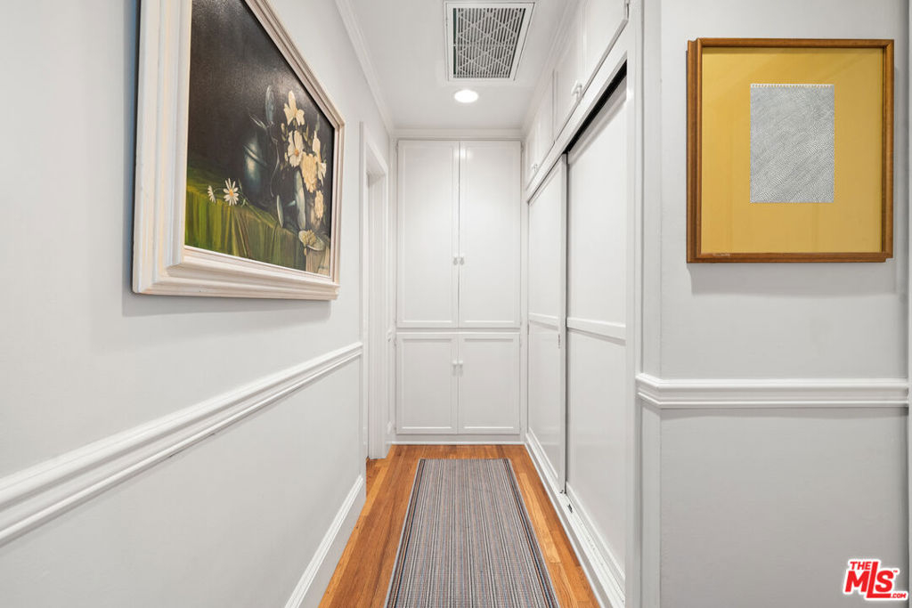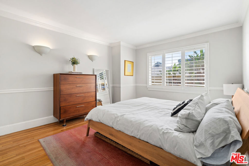 Just steps from the Sunset Strip, this top-floor pied-a-terre is tucked inside a romantic Spanish Revival building that feels like a secret in the middle of the city. Enter through a secure gate into a lush, palm-filled courtyard with a sprawling pool, vintage tile, and the kind of charm you hope to find in a place like this. Inside, the unit is bright, airy, and inviting. Original hardwood floors, crown moldings, and classic shutters give it a timeless feel, while natural light and an easy, open layout make it instantly comfortable. The kitchen blends old-world details with stainless steel appliances, and the hallway offers generous storage before leading to a spacious primary bedroom and a beautifully preserved bath with separate tub, shower, and large vanity. Secure, gated parking with an assigned space and additional storage adds everyday ease. And up the street from the Sunset Strip, you're surrounded by some of LA's best restaurants, shops, and nightlife - close to all the action, yet your own private escape.