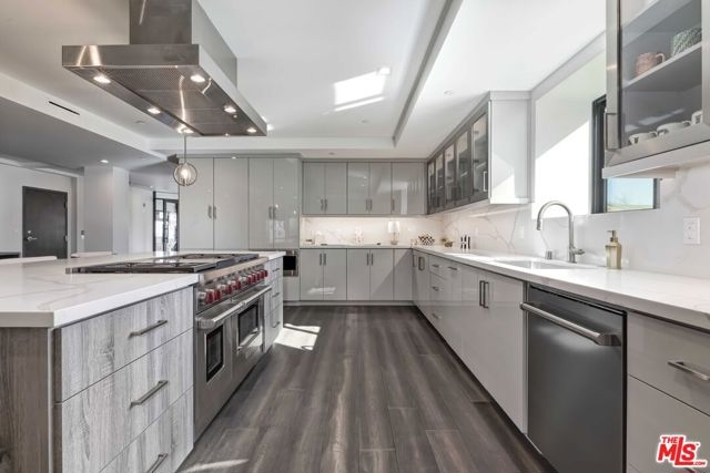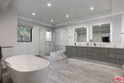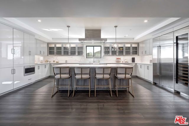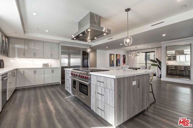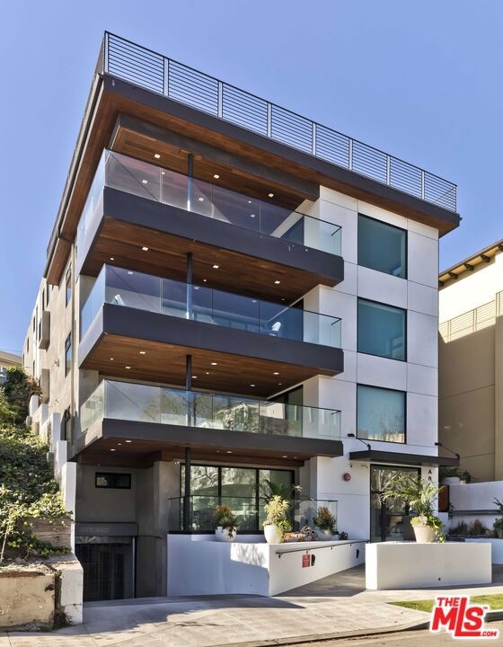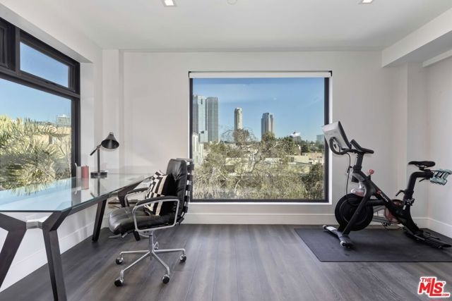 Set within a luxurious four-residence building, this bespoke contemporary home offers nearly 3,000 SF of refined living on its own floor with no shared walls. Guests are welcomed into the residence via a direct-access elevator. The grand, light-filled great room is anchored by wide-plank hardwood floors and expansive glass doors that seamlessly open to a generous terrace with captivating eastern views toward Century City. Designed for both everyday comfort and sophisticated entertaining, the layout includes a spacious living area and a glass-enclosed office. The impressive chef's kitchen boasts professional-grade Wolf appliances, a Sub-Zero refrigerator, dual ovens, a 60-bottle wine fridge, an oversized island with bar seating, and custom cabinetry. A charming dining area sits adjacent, perfect for intimate dinners or festive gatherings. The bedroom wing hosts the stately primary suite featuring a double-sided fireplace, an expansive walk-in closet, and a spa-like bath appointed with floating dual vanities, a freestanding soaking tub, and an oversized glass shower. Additional highlights include a stylish powder room, side-by-side laundry, abundant storage, and dual-zone HVAC. Perfectly positioned moments from the Century City, Beverly Hills dining and boutiques, and world-class golf at LACC and Rancho Park. This move-in-ready residence delivers elevated living at its finest - offering privacy, scale, and style without the upkeep of a single-family home.