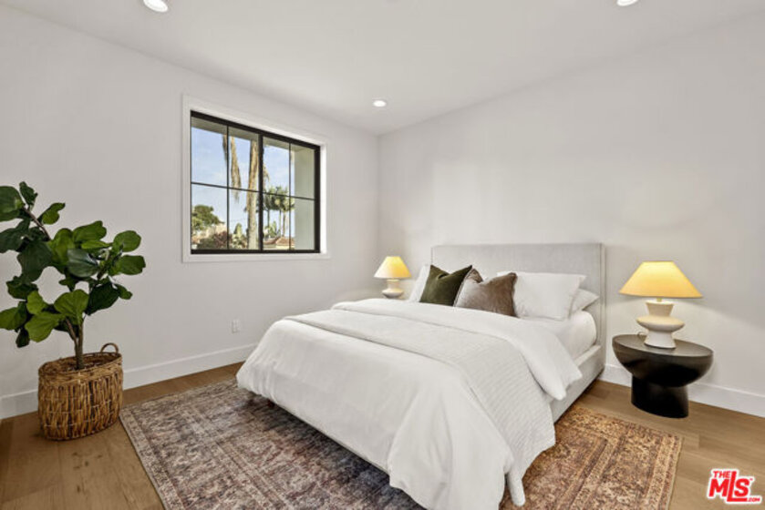 Welcome to Villa Benecia, Spanish for "the blessed one." This stunning, brand-new 2026 Thomas James Homes (a national leader in high-quality residences) modern Spanish-style townhouse condominiums built with quality craftsmanship, never lived in, features an elevator, attached garage, and an exceptional location in the highly sought-after Century Glen neighborhood. Ideally located just west of Westfield Century City and east of Beverly Glen, the home is blocks to fine dining, shopping, fitness centers, and more. Positioned on a hilltop, the residence offers beautiful views of the Century City skyline. Enter from the attached garage or through the formal covered front door into a dramatic entry hallway with high ceilings and warm hardwood floors. The main level features an open-concept dream kitchen with Wolf and Sub Zero appliances, a large center island seating up to six, a spacious living room with gas fireplace, and a generous balcony overlooking the private yard below. This level also includes a powder room and elevator access to all three floors. The top floor offers a luxurious primary suite and a guest bedroom, both with en-suite bathrooms, along with a laundry room and a flexible landing area ideal for a desk or seating nook with Century City views. The primary suite boasts abundant natural light, views of the Wilshire Corridor skyline, a walk-in closet, and a spa-like bathroom with expansive vanities, a large shower, and a freestanding soaking tub. The guest bedroom features ample closet space, a well-appointed en-suite bath, and stunning skyline views. The lower level, adjacent to the private backyard, provides an expansive open space ideal for a second guest suite, screening room, or entertainment area, complete with an en-suite bathroom. Rare offering with New Solar Panels on Roof. One of only two units available.