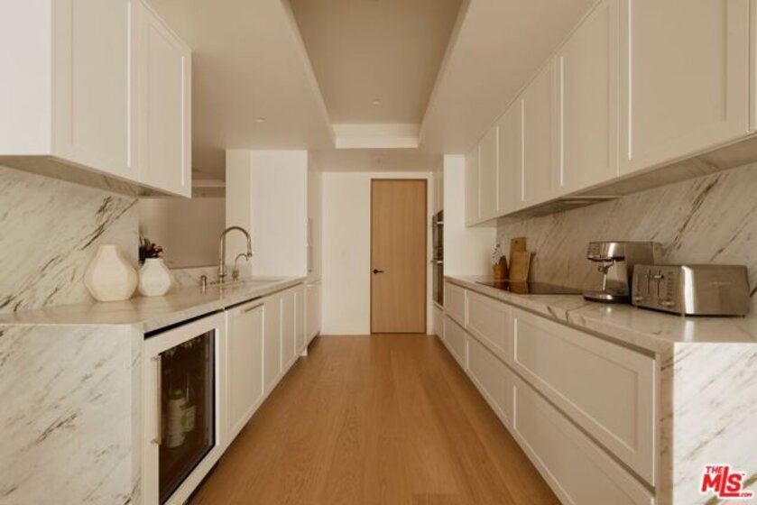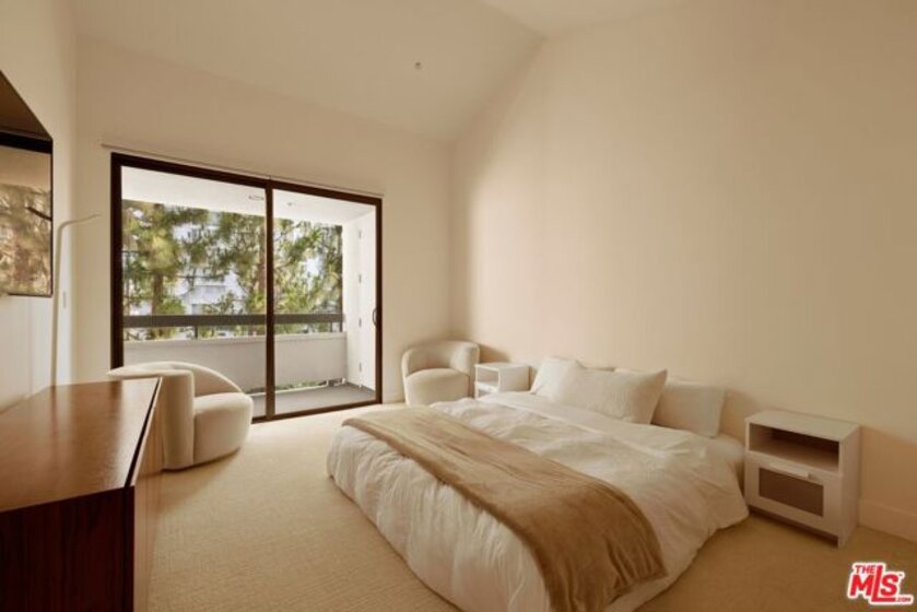 Rare Top Floor High Ceiling fully remodeled 3-bedroom, 2.5-bath residence with dual balconies the exclusive Century Park Place, a lush 14-acre, low-rise complex with 24-hour guard-gated security, three pools, tennis courts, a dedicated fitness center, and sauna, just moments from Rodeo Drive and Westfield Century City Mall. Every detail reflects a design-forward vision executed with lasting functionality and exquisite taste. Italian oak floors, a wood-paneled entryway wall, and soaring ceilings with architectural recessed lighting set the tone the moment you step inside. The kitchen is perfected by natural light pouring through breakfast nook windows, bathing custom Italian designed cabinetry, full Miele appliances, built-in beverage refrigerator, and imported Calacatta countertops that extend seamlessly up the backsplash. A complementary wet bar in the adjacent dining room mirrors the stone counters and cabinetry, completing the intention. Twenty-two-foot ceilings and sliding glass walls give the great room its heart, anchored by a travertine corner fireplace with direct balcony access. The primary bedroom frames views of the Hollywood Sign, Griffith Observatory, and the Hollywood Hills, with balcony access, a custom Large Italian designed walk-in closet, and a spa bathroom featuring dual sinks, freestanding tub, travertine tile walk-in shower, frosted glass water closet, and cove ceilings with custom lighting. Two additional bedrooms offer custom closets, solid wood doors, motorized shades, and sliding glass doors to the balcony. One en-suite and a powder room are finished in butterfly-matched Taj Mahal stone slabs, contrasting white oak, Phylrich hardware, and automated smart toilets. The large laundry room features a full size LG washer dryer (Vented) with matching stone countertops and custom cabinetry.The residence is fully equipped with Nest smart home heating and cooling, motorized shades, Lutron lighting, remote-accessible deadbolt, Ring security, built-in speakers, brand-new HVAC, Italian wood flooring, non-toxic eco paint, and a completely rewired electrical system. Nothing spared, this home is built to enjoy every day and last a lifetime.