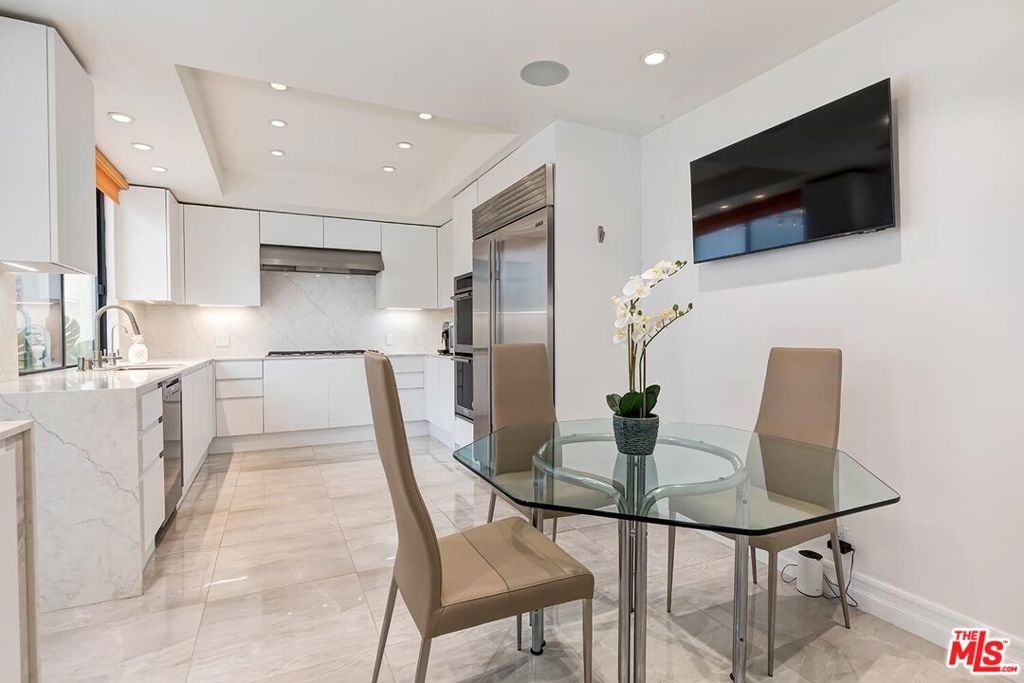 Exquisite, sleek, and sun-filled, this contemporary two-bedroom townhome offers sophisticated living in the heart of Century City's coveted Century Hill - a prestigious, guard-gated enclave set on 18 acres of lush, landscaped grounds. This immaculate three-level residence welcomes you through a private huge, gated patio on its courtyard level into a voluminous living room with soaring ceilings, a striking marble fireplace, and a dramatic central atrium that floods the space with natural light. The open-concept layout flows effortlessly into a formal dining area and adjacent open-air atrium, perfect for al fresco dining or relaxed entertaining. The modern kitchen is thoughtfully designed with stainless steel appliances, ample cabinetry, and a cheerful breakfast area complemented by a chic powder room and sleek wet bar on the main floor. Upstairs, beneath a large skylight, the grand primary suite offers a tranquil retreat with a cozy fireplace, sitting area, and private balcony showcasing sweeping hillside views. The spa-inspired bath features dual vanities, a soaking tub, separate shower, private water closet, and large walk-in closet. A spacious guest suite with full bath and open den area completes the upper level. On the lower, subterranean level, enjoy direct private access from a two-car garage, a dedicated laundry room, and additional large storage room space (can be converted back to 3rd parking space) enhancing the convenience and livability of this refined home. Century Hill's resort-style amenities include five sparkling pools, tennis and pickleball courts, an indoor racquetball court, golf driving range, state-of-the-art fitness center, manicured walking paths, and a stunning clubhouse with full catering kitchen all secured by 24/7 guarded access and enhanced by attentive resident services, including day-to-evening package delivery. Ideally located moments from world-class dining, shopping, and entertainment in Century City, Beverly Hills, and Westwood, this exceptional townhome is a rare expression of modern luxury and timeless design.
