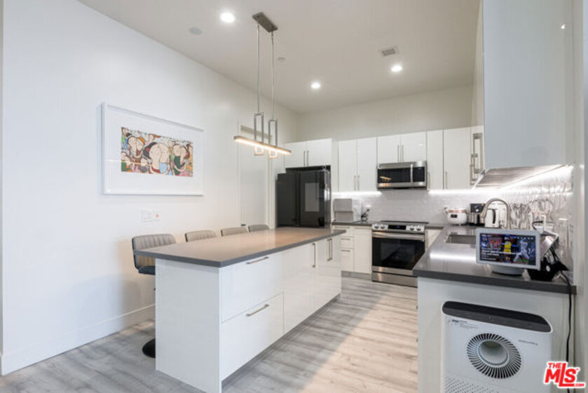 Discover stunning views in this elegantly designed north-facing unit at the prestigious Summit on Sixth high-rise. Revel in the expansive private balcony offering sweeping sights of the famous Hollywood Sign and Griffith Observatory, visible from both bedrooms and the living area. this 2-bedroom, 3-bathroom open-concept home is filled with natural light, showcasing luxurious and tasteful renovations that make it truly unique within the building. The gourmet kitchen features new premium appliances, modern cabinetry, and a marble countertop, ideal for hosting guests. The spacious primary suite includes a walk-in closet, a large tub, a walk-in shower, and dual vanities. The secondary bedroom also has an en suite bathroom with a walk-in shower and closet. This exclusive building offers top-notch amenities, a package retrieval and tracking system, a gym, a sauna and an indoor golf simulator. The unit includes two designated underground side-by-side parking spaces, complete with an EV charger. Situated in the heart of Korea town, you're just steps away from a variety of restaurants, grocery stores, the Metro Station and much more.