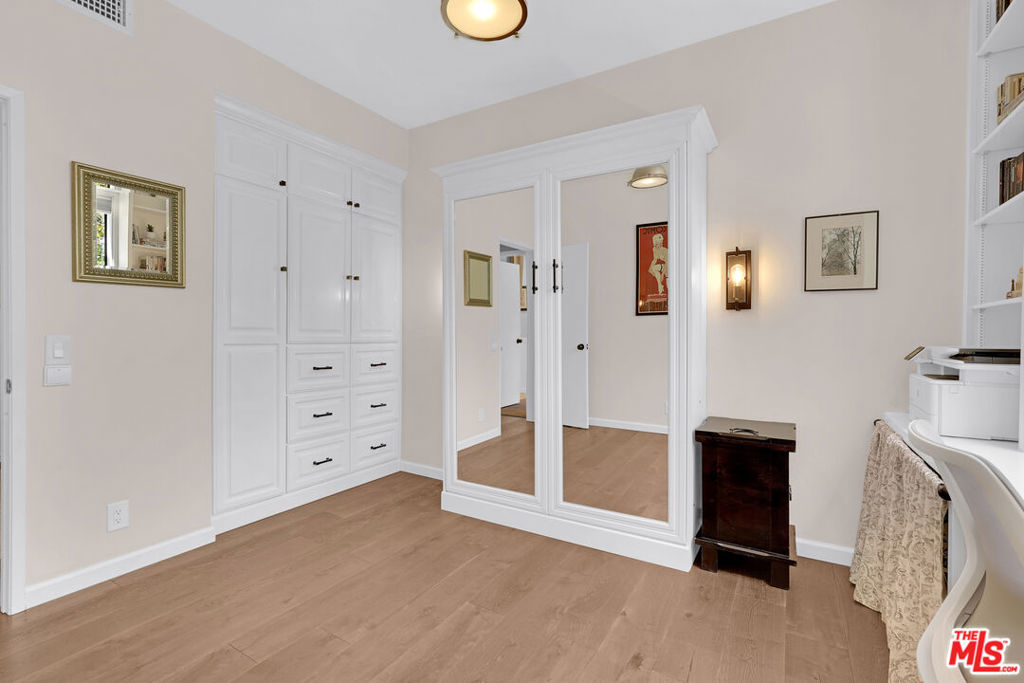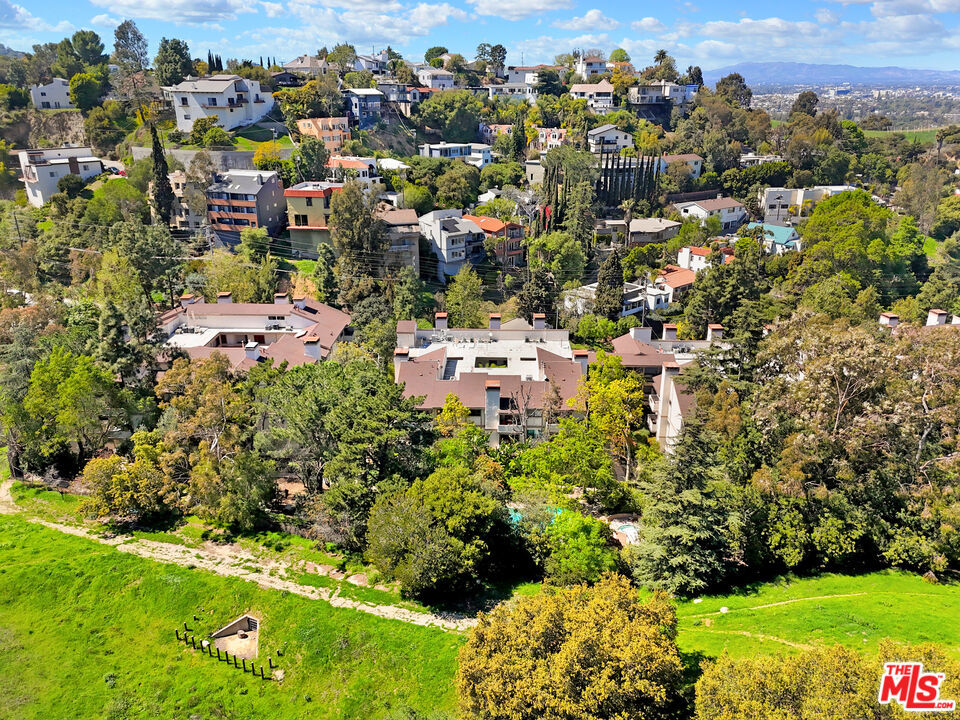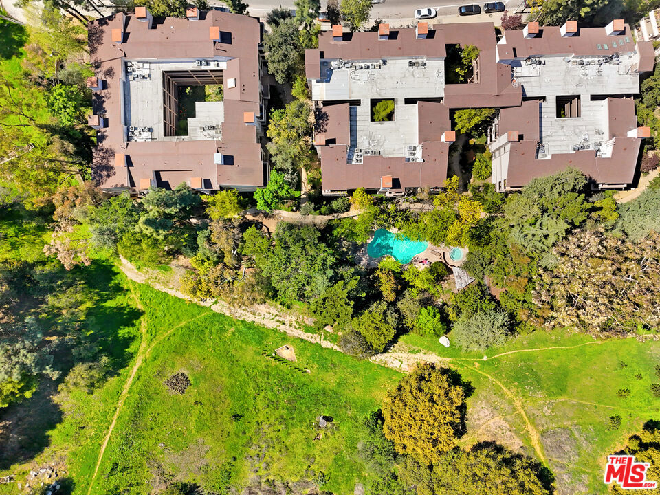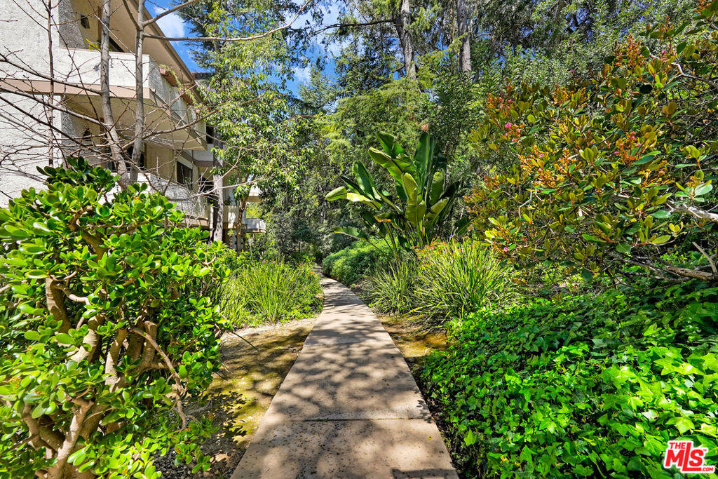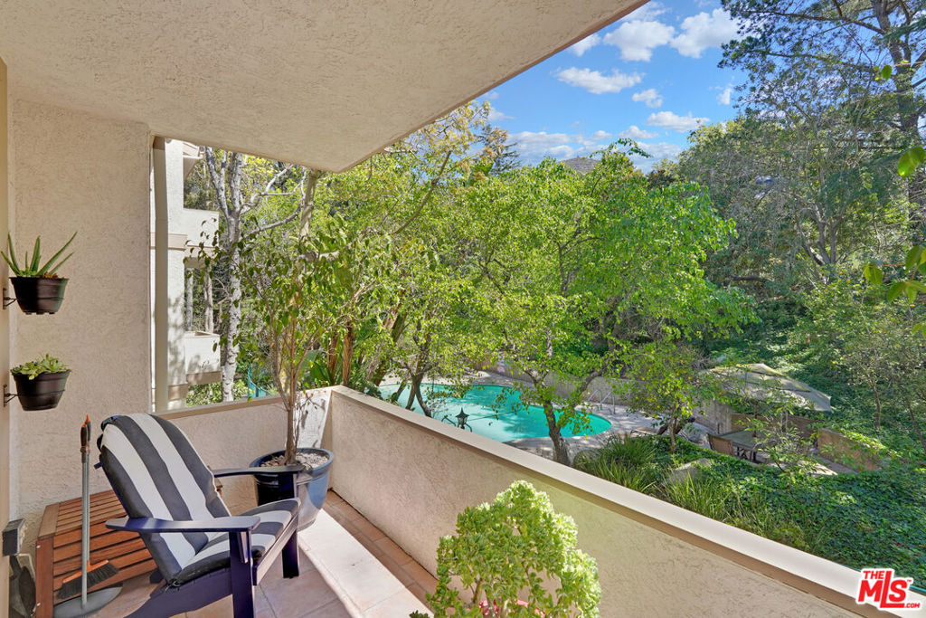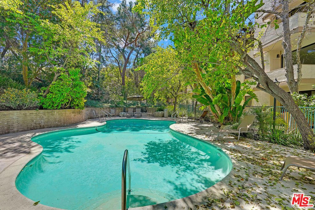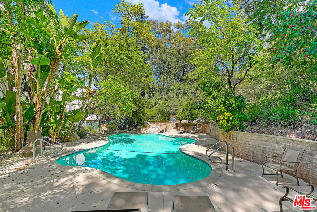 Refined, studio district 2-bedroom 2-bath retreat! Tucked within a serene, park-like setting, this impeccably reimagined residence blends modern elegance with effortless living. Moments from Universal, Disney, and Warner Bros. studios, as well as vibrant dining, nightlife, and iconic hiking trails, it offers the perfect balance of tranquility and urban energy. A thoughtful renovation has transformed the interiors, featuring sleek cabinetry, high-end appliances, and warm hardwood flooring. Curated lighting and illuminated closets enhance the home's refined aesthetic, while high ceilings invite natural light from coveted eastern and southern exposures. A cozy fireplace anchors the living space, creating an intimate retreat for relaxing evenings, while an in-unit washer and dryer add effortless convenience. Set at the rear of the building for ultimate privacy, the home extends seamlessly outdoors with two balconies overlooking the shimmering pool and Hollywood Hills. A private back gate provides exclusive access to the Hollywood Sign, Hollywood Reservoir, and Wisdom Tree Trail. Complete with two parking spaces and additional storage, this is a rare opportunity to experience elevated design in the heart of Los Angeles.