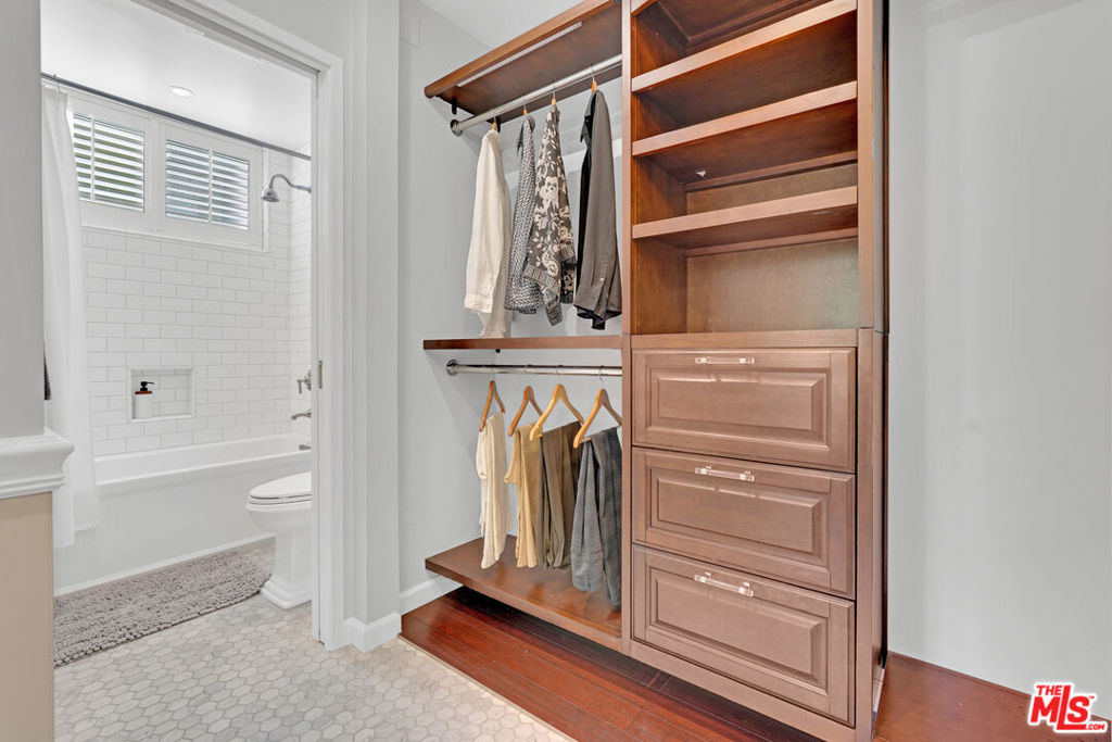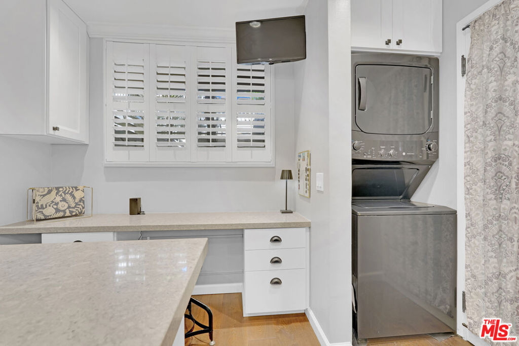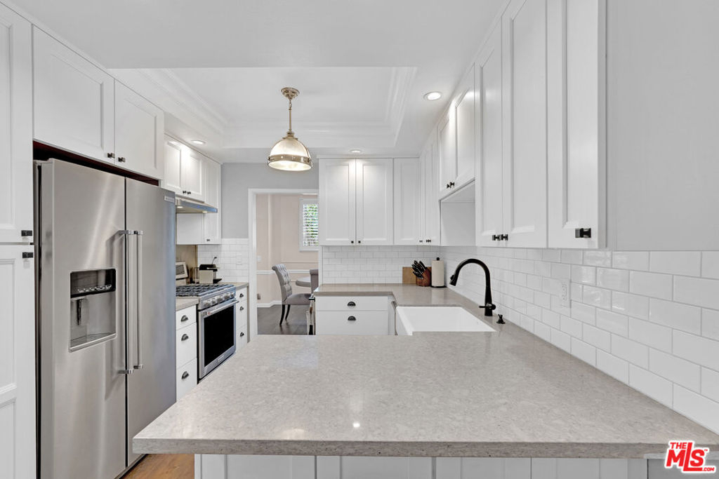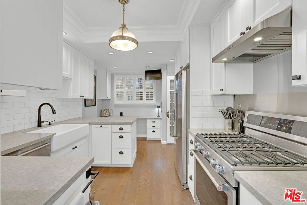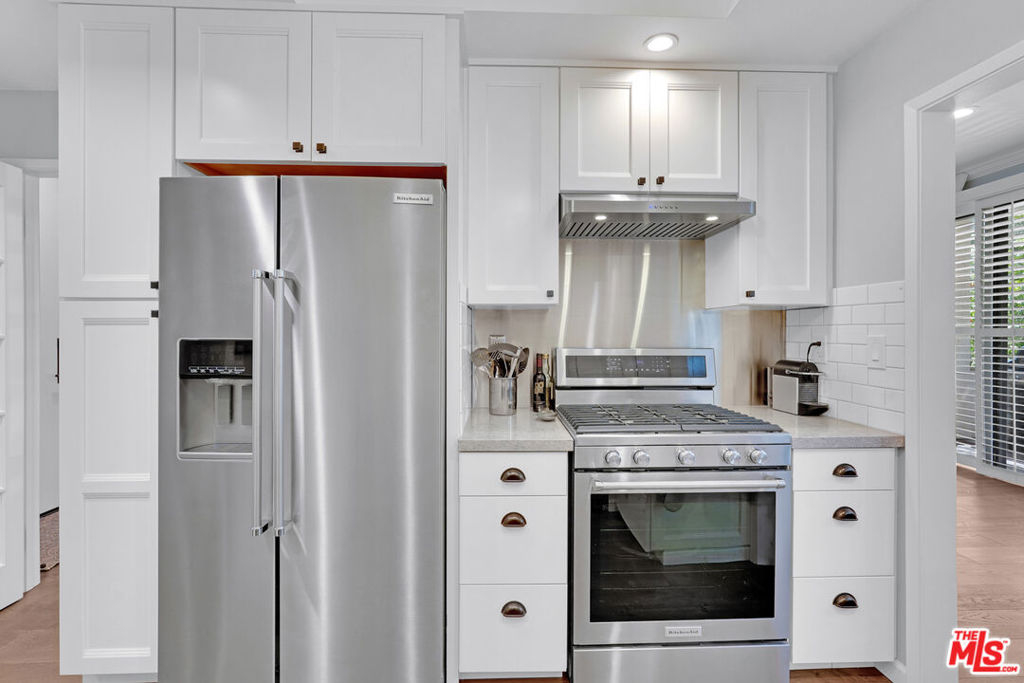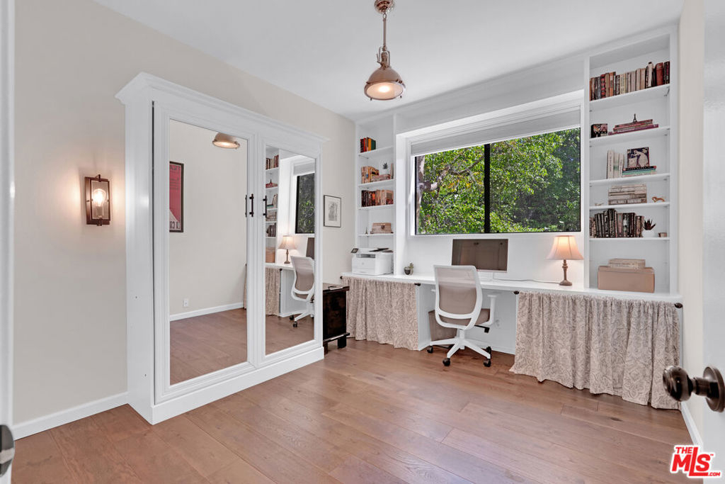 Refined, studio district 2-bedroom 2-bath retreat! Tucked within a serene, park-like setting, this impeccably reimagined residence blends modern elegance with effortless living. Moments from Universal, Disney, and Warner Bros. studios, as well as vibrant dining, nightlife, and iconic hiking trails, it offers the perfect balance of tranquility and urban energy. A thoughtful renovation has transformed the interiors, featuring sleek cabinetry, high-end appliances, and warm hardwood flooring. Curated lighting and illuminated closets enhance the home's refined aesthetic, while high ceilings invite natural light from coveted eastern and southern exposures. A cozy fireplace anchors the living space, creating an intimate retreat for relaxing evenings, while an in-unit washer and dryer add effortless convenience. Set at the rear of the building for ultimate privacy, the home extends seamlessly outdoors with two balconies overlooking the shimmering pool and Hollywood Hills. A private back gate provides exclusive access to the Hollywood Sign, Hollywood Reservoir, and Wisdom Tree Trail. Complete with two parking spaces and additional storage, this is a rare opportunity to experience elevated design in the heart of Los Angeles.