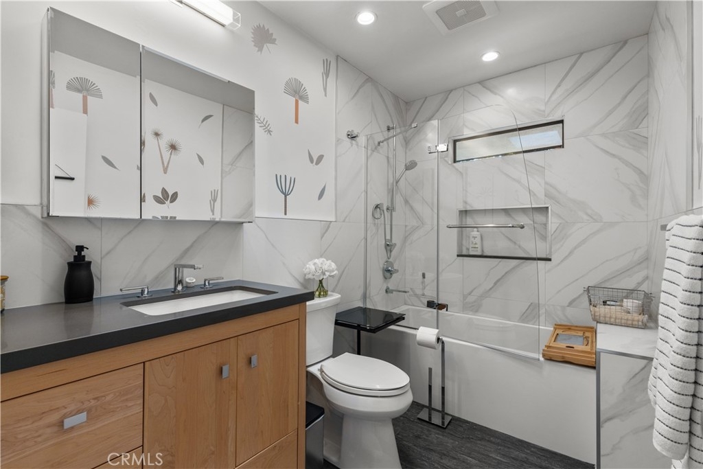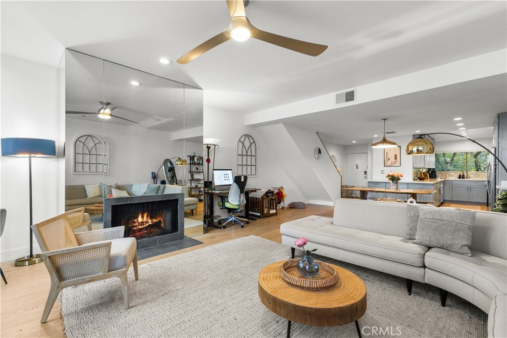 Welcome to this move-in ready architectural condo in the gated Skyline Townhome community, which was designed by noted architect Lorenzo Tedesco. Step inside to a light and airy open floor plan where floor-to-ceiling steel-framed windows and stunning floors create an atmosphere of warmth and sophistication. The seamlessly connected living and dining areas flow effortlessly into a remodeled kitchen, boasting sleek stone countertops, stainless steel appliances and ample storage space. Upstairs you’ll find two generously sized bedrooms and two tastefully updated bathrooms, including a luxurious primary suite that boasts a well-appointed ensuite bathroom. Additional highlights include in-unit laundry, two spacious balconies, a community pool/spa and two side by side parking spaces within the secured community garage. Centrally located between the Valley, Westside and Downtown LA, this property is just moments from the Hollywood Bowl, Universal Studios, Ventura Boulevard's vibrant shopping/dining scene and so much more.