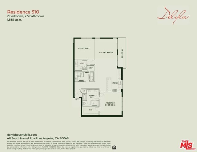 Final opportunities remain at Delyla, offering boutique LA living just steps from premier dining and shopping on Robertson Blvd. Residence 310 is a 2-bedroom, 2.5-bath home with 1,835 SF of refined interiors and 129 SF of outdoor space. The open layout flows from the U-shaped chef's kitchen into the great room and out to a private terrace. Finishes include hardwood plank flooring, marbled Caesarstone countertops, Italian cabinetry, and Sub-Zero paneled refrigerator and dishwasher. The kitchen features a Wolf induction cooktop, oven, and 36" hood. Bathrooms showcase polished grey tile slabs, Emser porcelain flooring, Gessi fixtures, and LED recessed lighting, while the primary suite offers a walk-in closet and water closet. Delyla elevates daily living with amenities including concierge services, resident lounge and gym, outdoor lounge with pizza oven, and secured subterranean parking.