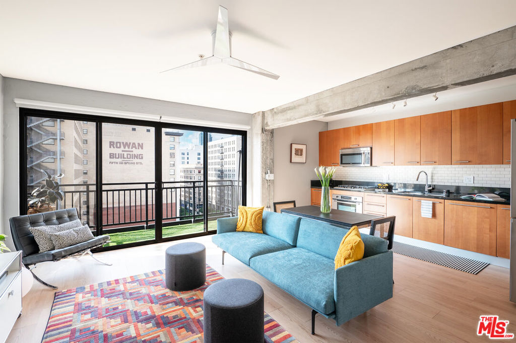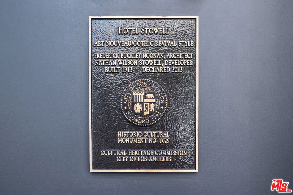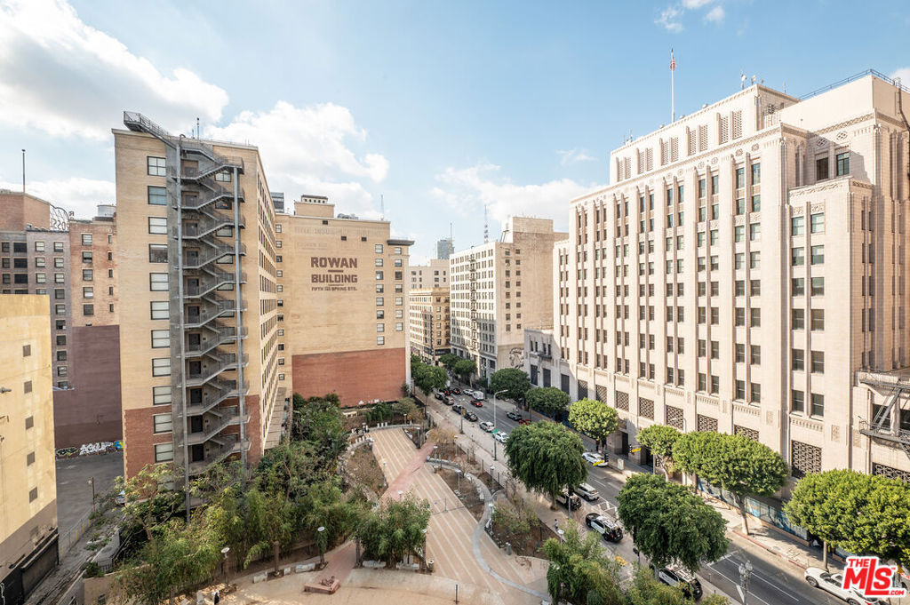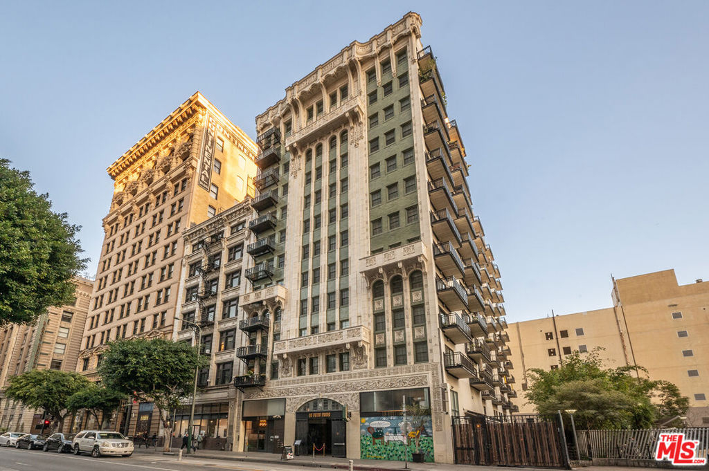 A rare blend of history, character, and modern upgrades, this ninth-floor condo in the iconic El Dorado Lofts is perfect for anyone who loves living in a space with a story. Built in 1914 and once home to Hollywood legends like Charlie Chaplin, the building offers the charm of a bygone era paired with the convenience of contemporary living. Inside, you'll find high ceilings, exposed concrete details, and a thoughtful layout that feels spacious and inviting. The private balcony provides stunning city views ideal for soaking in the energy of Downtown LA while enjoying a quiet moment above it all. Recent updates include premium plank flooring, custom motorized window treatments and smart LED Lighting. A modern kitchen with Snaidero Italian cabinetry, granite countertops, and stainless steel appliances, including a Samsung refrigerator with a built-in beverage center make hosting a breeze. The bathroom features a partially enclosed tub with subway tile and chrome fixtures, creating a clean, classic feel. This condo is perfect for those who want to enjoy the culture, entertainment, and vibrant atmosphere of Downtown LA, while also appreciating the historical significance of living in a landmark like the El Dorado. With a Walk Score of 96, you're just steps from iconic destinations like Disney Concert Hall, the Last Bookstore, and Grand Central Market, along with a growing list of incredible restaurants and cafes. Public transportation is close by, making it easy to explore even more of what LA has to offer.As a Mills Act property, this home also comes with significant property tax savings, making it a smart investment as well as a special place to live. Secured monthly parking with EV charging options is conveniently available adjacent to the property. If you're looking for a home that's rich in character, ideally located, and thoughtfully updated, Unit 908 is ready to welcome you.