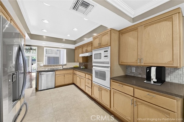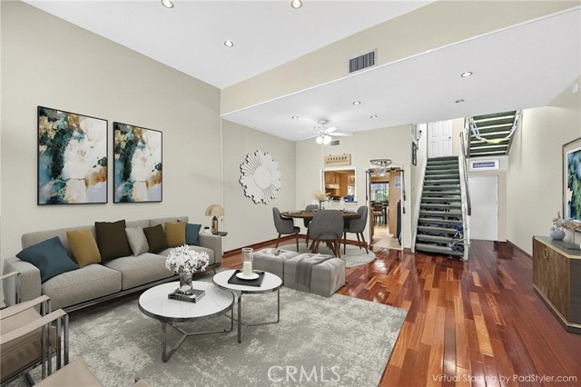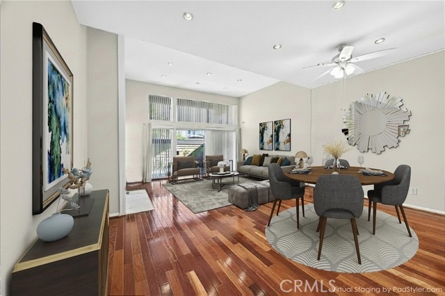 Welcome to 421 S Van Ness Avenue Unit 6, a rare opportunity in the coveted gated community of Hancock Square, located near the prestigious neighborhoods of Hancock Park and Larchmont Village. This beautiful townhome features one of the most sought after floor plans in the community, offering exceptional comfort, privacy, and a peaceful atmosphere. With approximately 1,597 square feet of living space, this two bedroom, two and a half bath residence welcomes you with an inviting entry, a spacious coat closet for added storage, and a convenient powder room for guests. The remodeled kitchen offers granite counters, an abundance of cabinet space, and a dining area that opens to a private front patio surrounded by mature trees. The expansive living room showcases soaring two story ceilings, rich wood flooring, abundant natural light, a cozy gas fireplace, and a built-in office desk area that is perfect for working from home. Sliding doors lead to a second private patio that is large enough for barbeques and outdoor relaxation, with tranquil views of lush trees. A short set of stairs leads to the secondary bedroom featuring generous closet space and an ensuite bathroom with a shower over tub. The laundry room is conveniently located on this level as well. The top floor is dedicated to the private primary suite, which includes dual closets and a spa inspired bathroom with dual sinks, a vanity area, a separate shower, and a relaxing soaking tub. Residents of this gated community enjoy wonderful amenities including a sparkling pool and spa, picnic and outdoor seating areas, and a secure community parking garage with elevator access. The assigned parking spaces are ideally located right as you enter through the private gate, offering outstanding convenience. This exceptional home is just moments from Larchmont Village, popular restaurants, shops, banks, Paramount Studios, The Grove, Beverly Hills, Hollywood, West Hollywood, Downtown Los Angeles, the Wilshire Corridor, the Metro station, and easy access to the 10 and 101 freeways. Do not miss the chance to own this stunning and move in ready home in one of the most desirable areas of Los Angeles. Schedule your private tour today.