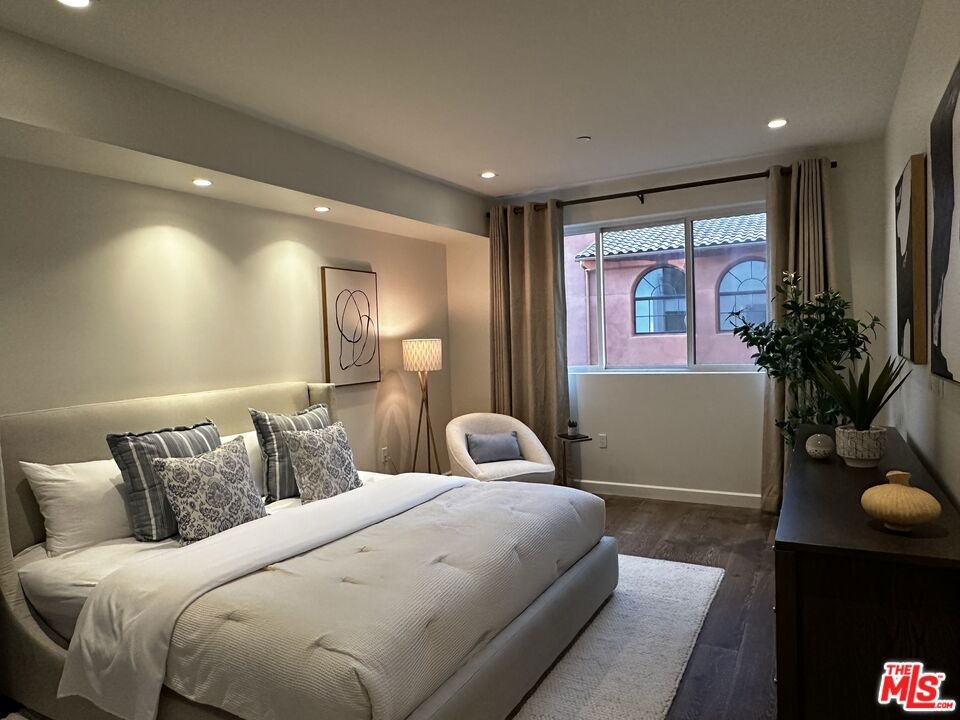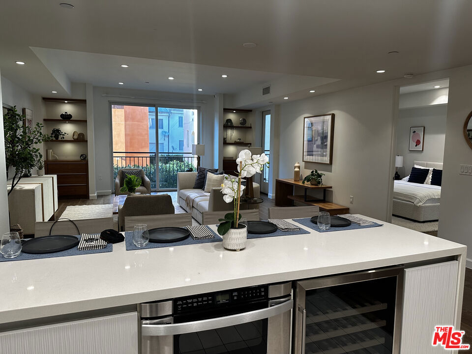 Situated on the second floor of The Cosmopolitan Brentwood, this 2-bedroom, 2.5-bath residence offers a sophisticated blend of quality, comfort, and elevated services in one of Brentwood's rare premier full-service buildings. The open living and dining area is finished with wide-plank wood floors and clean, contemporary details ad a guest bathroom. The well-appointed kitchen features Fisher & Paykel and Bosch appliances, a Wolf range/oven, sleek cabinetry, and generous workspace. Both bedrooms include en-suite baths, with the primary suite offering dual vanities and a tailored walk-in closet. Additional highlights include in-unit laundry, secure 2 car parking and private storage. Residents enjoy a comprehensive amenity collection, including 24/7 concierge service, controlled access, a modern fitness center, heated pool, outdoor lounge with fire pit, meditation garden, EV charging, and ample guest parking. Positioned within moments of Brentwood's acclaimed dining, cafes, grocery stores, boutique fitness studios, parks, and Brentwood Village, this home delivers refined living in an exceptionally convenient Westside setting.