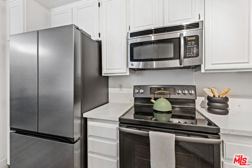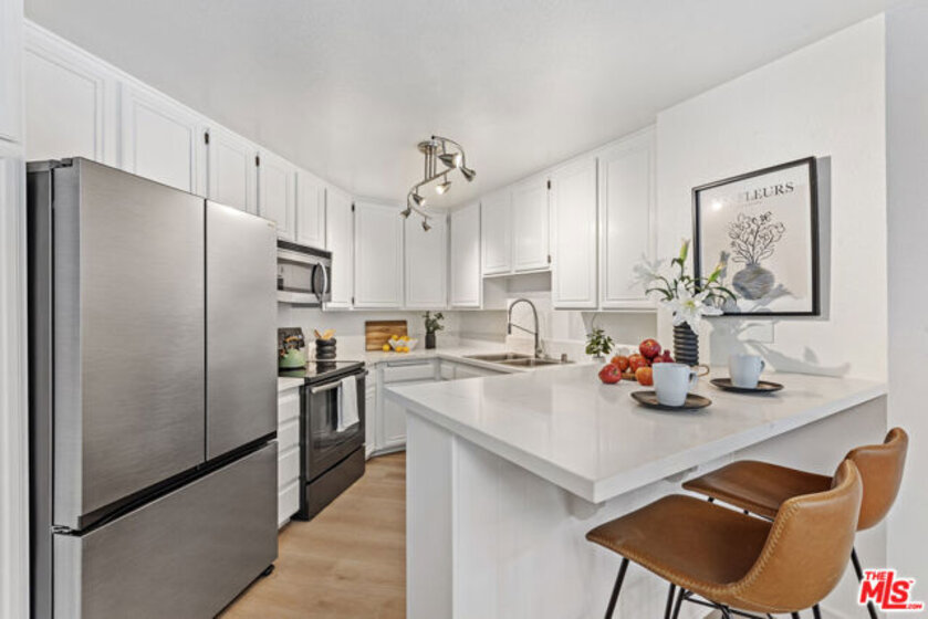 This condo feels and looks brand new with impressive upgrades: a new central air/central heating system with advanced features, custom cabinets with glass shelves, new floors throughout the unit, smooth ceilings with recessed lighting, fresh paint, and gorgeous statement light fixtures. The chef will love cooking with new top-of-the-line stainless steel appliances, prepping on beautiful white quartz counters, and serving meals on the expanded quartz breakfast bar suitable for entertaining. Two spacious bedrooms offer large mirrored closet doors, and one bedroom has direct access to the sunny balcony. Bathroom features don't disappoint the spa-like space boasts granite counters and tile floors, along with a conveniently located washer/dryer behind frosted glass closet doors. The bright open concept flows seamlessly from living, dining and kitchen areas and is meticulously upgraded to move in relax and be comfortable. Every inch of this charmer is calling you to enjoy the features in its cozy environment. For added convenice-2 parking spaces #61 and #62 are located in a secure garage with EV Chargers and Eaton Crest amenities include a pool, spa, wrap- around sun deck and recreation room/multi use facility. The Monterey Hills is a community of opportunities--dog and public parks, entertainment venues, coffee shops and close proximity to major freeways, medical centers, DTLA and Pasadena. HOA covers Water, Hot Water, Trash, General Maintenance & Landscaping and HOA Insurance. Completed: HOA annual termite clearance by Elite Pest Control, HOA - California Balcony Inspection Certificate. See attachment for complete list of upgrades.