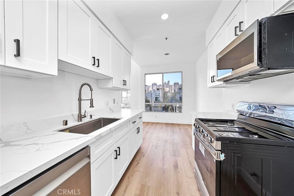 beautifully renovated Penthouse condominium located in Mid-Wilshire Koreatown area. Spacious 2 Bedroom and 2bathroom corner / End unit. Living room with fireplace and dinning area. Spacious master suite has own bathroom, and walk-in closet. Penthouse at top floor with High-ceiling, great views. No unit above, laminated wood flooring throughout the whole house. New kitchen with new white cabinet and quirts counter top. new appliance, new cooktop, new microwave, new dish washer. Balcony to soak in the views. Low HOAs, This property comes with two tandem assigned parking space at community garage and multiple guest parking. Inside laundry room, private storage, Building has a welcoming grand entry lobby with high ceilings, Elevator access to top four floors. Quite neighborhood and street within walking distance of Wilshire and Vermont Boulevards. Easy public transportation access (Metro, Bus stops). Shopping centers, Supermarkets, and fine restaurants just equally nearby.