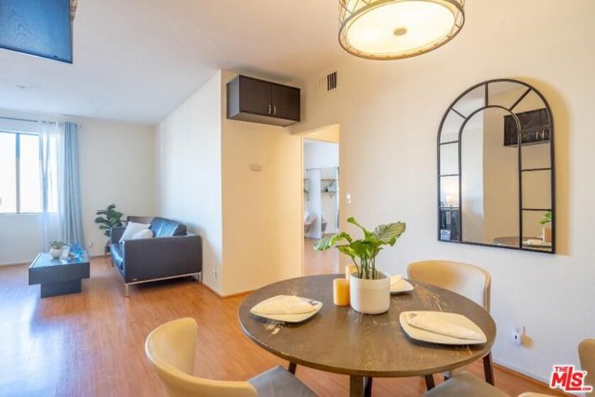 This thoughtfully designed 2-bedroom, 2-bath condo offers a comfortable flow and a calm, open feel. The north-facing living room is filled with natural light and showcases beautiful views, seamlessly connecting to the dining area and kitchen. The kitchen features a charming perfect for casual meals or hosting guests.The first bedroom enjoys soft north-facing light and a spacious closet, with a full bathroom nearby. The south-facing primary suite offers added privacy and includes its own en-suite bathroom.Additional highlights include two assigned parking spaces, ample guest parking, access to a community pool, a conveniently located laundry room on the same floor, and an electric car charger in the building .Ideally situated near Ralphs, The Wiltern, Larchmont Village, and the vibrant dining, cafe, and nightlife scene of Koreatown, this home offers easy access to some of LA's most iconic destinations.