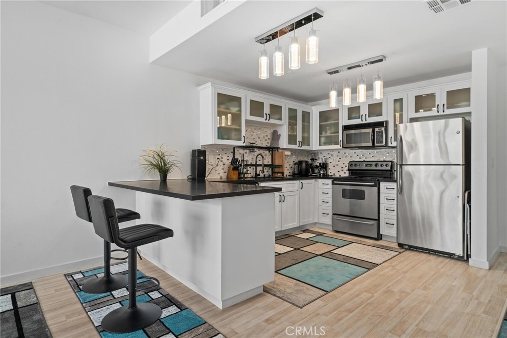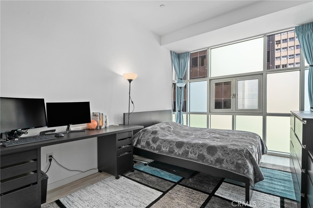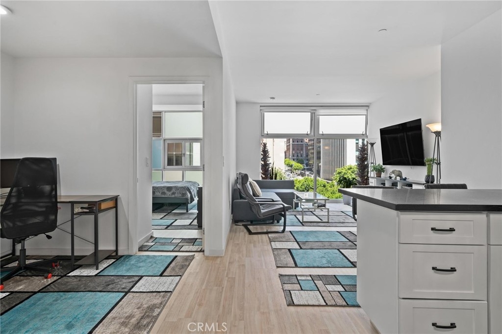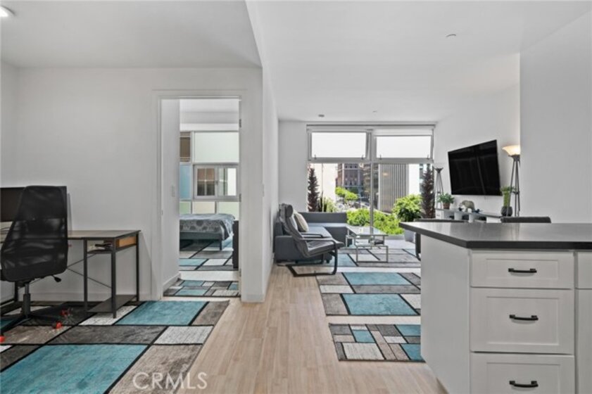 Modern, turnkey condo in the Library Court community of Downtown Los Angeles, located in the heart of the Financial District! This condo has it all, fully renovated kitchen, upgraded flooring, recessed lighting, floor to ceiling windows with a partial skyline view, and so much more! The open kitchen is perfect for entertaining and features black granite countertops, Glass display cabinet, full intricate backsplash, plenty of cabinet space for all your organizational needs and stainless-steel appliances. The large living room is light and bright with natural sunlight that beams through the oversized windows. The spacious bedroom features high ceilings, large mirrored closet doors and floor to ceiling privacy windows. The bathroom showcases an upgraded vanity area, tub/shower combo, and a convenient linen cupboard. Enjoy all the amenities of the association such as the 24-hour security, gym, media center, courtyard, private parking area, and lounge. Do not miss out on this stunning unit, schedule your showing today!