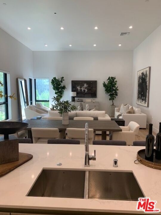 Stunning 3-bedroom, 3.5 bath, tri-level townhome that is west facing off of N. Croft Avenue; located just steps from iconic Melrose Place in a highly walkable neighborhood. Noir 7 wide plank hardwood flooring throughout, the Nordic palette is sleek with touches of light oak finishes. Snaidero kitchen cabinetry and Caesarstone countertops provides a contemporary feel for this open kitchen. Subzero and Wolf appliance package. Bright, Pure White Caesarstone bath countertops throughout and standalone soaking tub in the master bath.