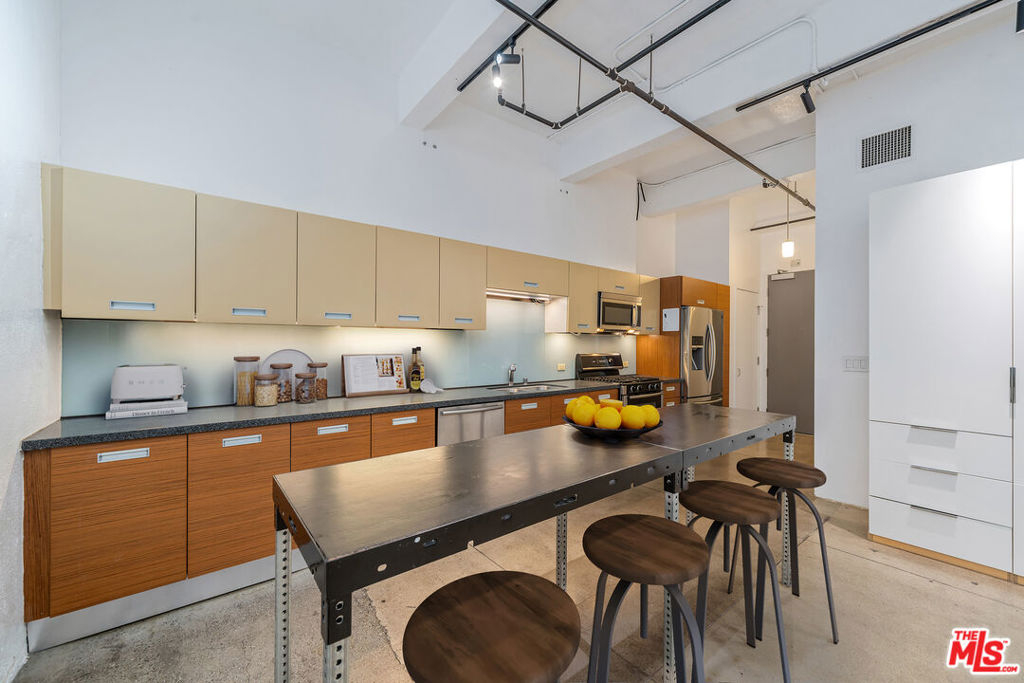 Own a piece of history at the Mills Act-approved Eckardt Building and benefit from significant annual property tax savings - a rare advantage in Downtown LA. This authentic live/work loft in Santee Village blends historic architecture with modern upgrades. Soaring ceilings, oversized industrial windows overlooking a serene courtyard, polished concrete floors, and automatic blinds create the quintessential DTLA aesthetic. What truly sets this home apart? A custom-built raised platform with eight discreet hatches offering approximately 240 cubic feet of hidden underfloor storage - a $40,000 upgrade you won't find in neighboring units. Thoughtful Elfa systems and additional bedroom shelving maximize functionality without sacrificing style. The open kitchen features Bosch appliances, Samsung refrigerator, and a brand-new LG washer and dryer. Includes one covered parking space. Residents enjoy 24-hour security patrol and resort-style amenities: pool, spas, fitness center, BBQ area, golf driving range, and basketball court. Step outside into one of Downtown's most walkable neighborhoods moments from Apple Tower Theatre, Sonoratown, Broken Mouth, shopping, nightlife, and Metro access. If you've been waiting for a loft with character, tax advantages, and serious storage this is the one.