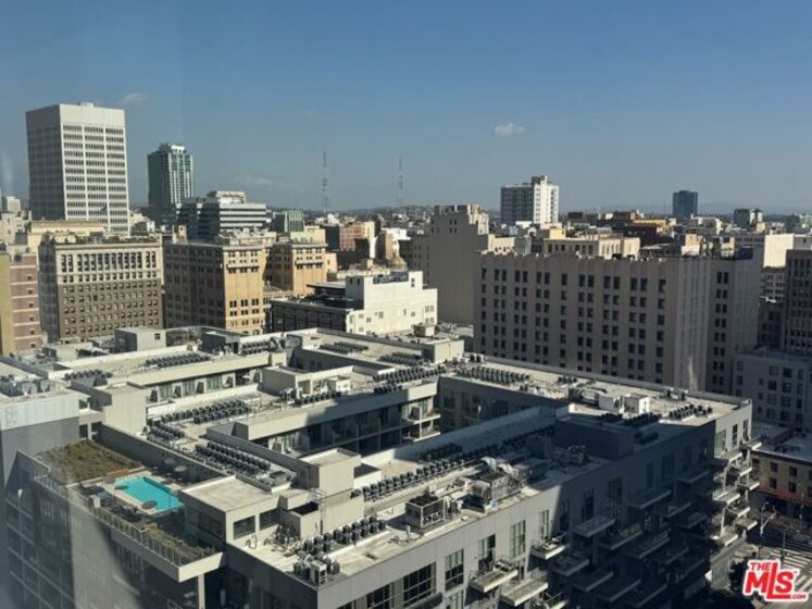 Sky Lofts is at the epicenter of DTLA in the South Park District. Perched high above the city on the 15th floor at 801 S Grand Ave, this 2-bedroom, 2-bathroom, 1,220 square foot loft-style condo offers a seamless blend of modern finishes, open-concept living, and exciting skyline views. This south facing unit has massive windows, letting natural light spill in to create an ideal backdrop for both day-to-day living and evening entertaining. 10 foot high ceilings add to the loft style vibes. The kitchen is open to the living room with a breakfast bar/island with plenty of storage and seating capability as well as a dining area between the kitchen and living room. Off of the living room there is primary bedroom suite with a spacious ensuite bathroom that includes a double vanity, a large tub and separate shower. Attached to the primary bathroom is a large closet. The 2nd bedroom, off the main entryway, is perfect as an office or guest bedroom and situated next to the 2nd full bathroom. There are light hardwood floors throughout the unit giving it a modern and bright tone. In addition, there is an in unit washer and dryer closet and central heat and air conditioning. The list of building amenities are impressive - a premium updated gym, a movie/media room with comfy theatre style seating, a clubhouse/entertainment room with a full kitchen that can be booked for events and a 24 hour security desk in the lobby. The unit includes two side by side parking spaces in the underground garage. There is a separate garage on site with ample visitor parking for guests. Nightlife, dining, entertainment and shopping are minutes away. Notable restaurants nearby like Bottega Louie, Water Grill, 71 Above and LeGrand. Across the street from Whole Foods and within 5 blocks from Crypto.com arena. If you're looking for a downtown city lifestyle with a walkable neighborhood and vibrant culture, then 801 Grand Ave is the place to be.