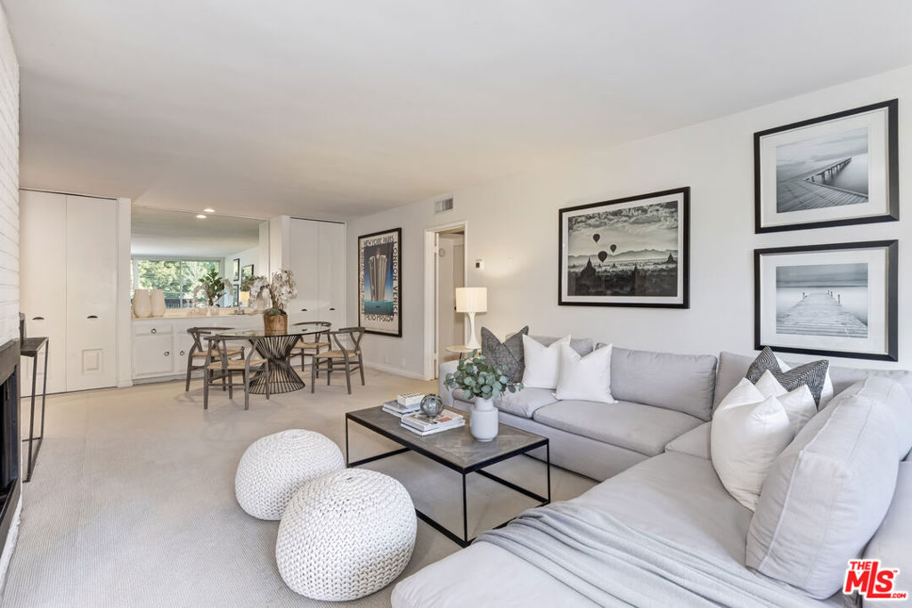 Brentwood Sycamore Condominiums - An exceptional opportunity to own in the heart of Brentwood, with dining, shopping, and everyday conveniences just steps away. This north-facing 1-bedroom, 1-bath residence offers 1,054 square feet of living space and a spacious covered balcony. A formal entry opens to a bright and inviting living room featuring a fireplace, wet bar, and built-in cabinetry, flowing seamlessly into a formal dining area. The galley-style kitchen includes ample cabinet space, built-in and freestanding appliances, and a pantry. The generously sized bedroom features a walk-in closet, and the bathroom offers a tub/shower combination. North-facing exposures from the bedroom, living room, dining area, and balcony provide abundant natural light throughout the day. Community laundry is conveniently located just down the hall. The building features a stylish two-story lobby and resort-style amenities, including a pool, spa, outdoor patio, fully equipped gym, sauna, and recreation room. HOA includes Cable, Internet, Water, HBO, and Showtime. Ideally located near San Vicente Boulevard's popular restaurants and coffee shops, the Brentwood Sunday Farmers Market, Whole Foods, and more. Seller intends to complete a 1031 tax-deferred exchange at no cost to Buyer.