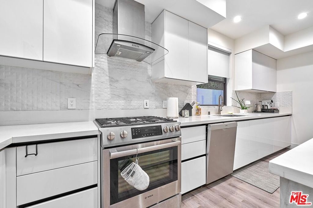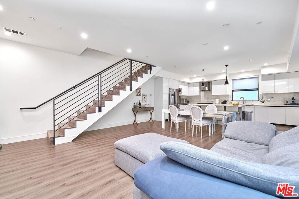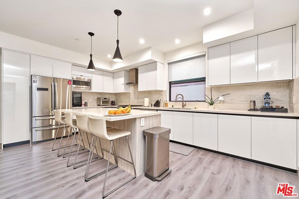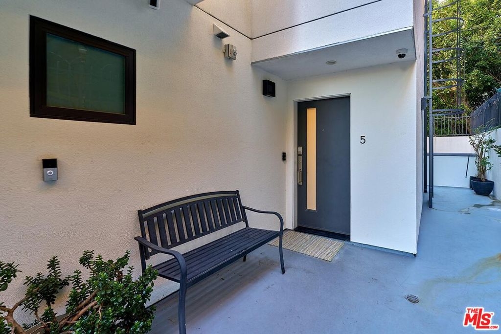 This condo showcases a refined and sophisticated design, filled with abundant natural light that creates a bright and inviting atmosphereideal for both relaxation and entertaining. Each bedroom features its own private balcony, and this is the only unit that offers an exclusive private patio. A modern glass fireplace adds warmth and style, while the dream kitchen is fully equipped with top-of-the-line Bosch and Kohler stainless steel appliances, complemented by elegant lighting.The primary suite boasts a luxurious bathroom with a soaking tub, a separate shower with designer massage features, and a spacious industrial-style walk-in closet. High ceilings, skylights, a private balcony, and beautiful views further elevate the second-floor living space. Ideally located within walking distance to Santa Monica Boulevard and Melrose Avenue, and just minutes by car from Runyon Canyon and The Grove.